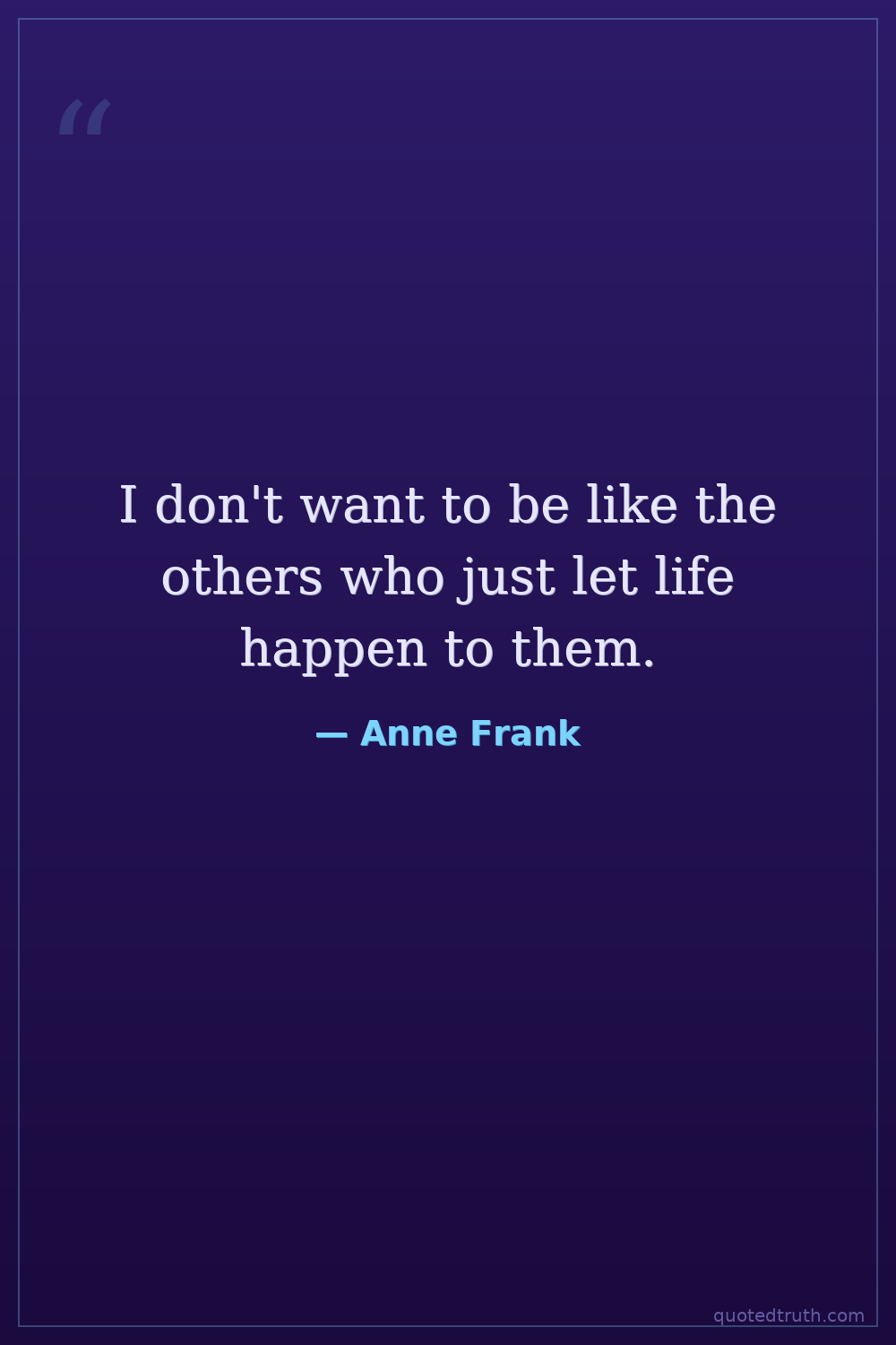 I don't want to be like the others who just let life happen to them.