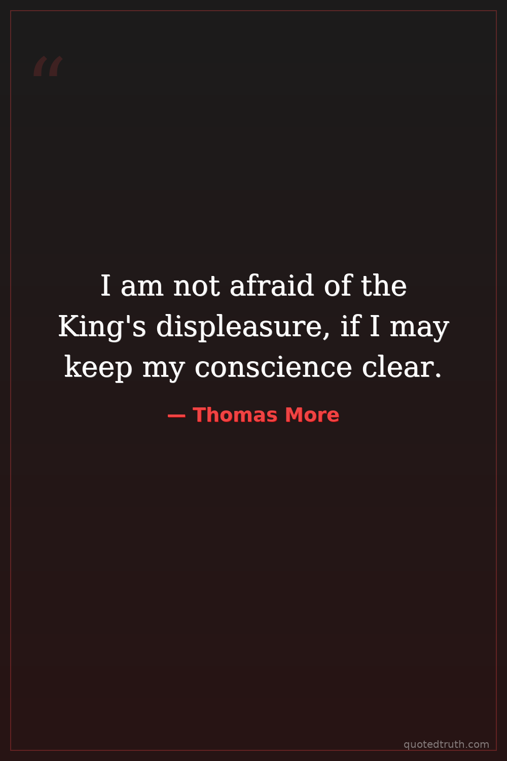 I am not afraid of the King's displeasure, if I may keep my conscience clear.
