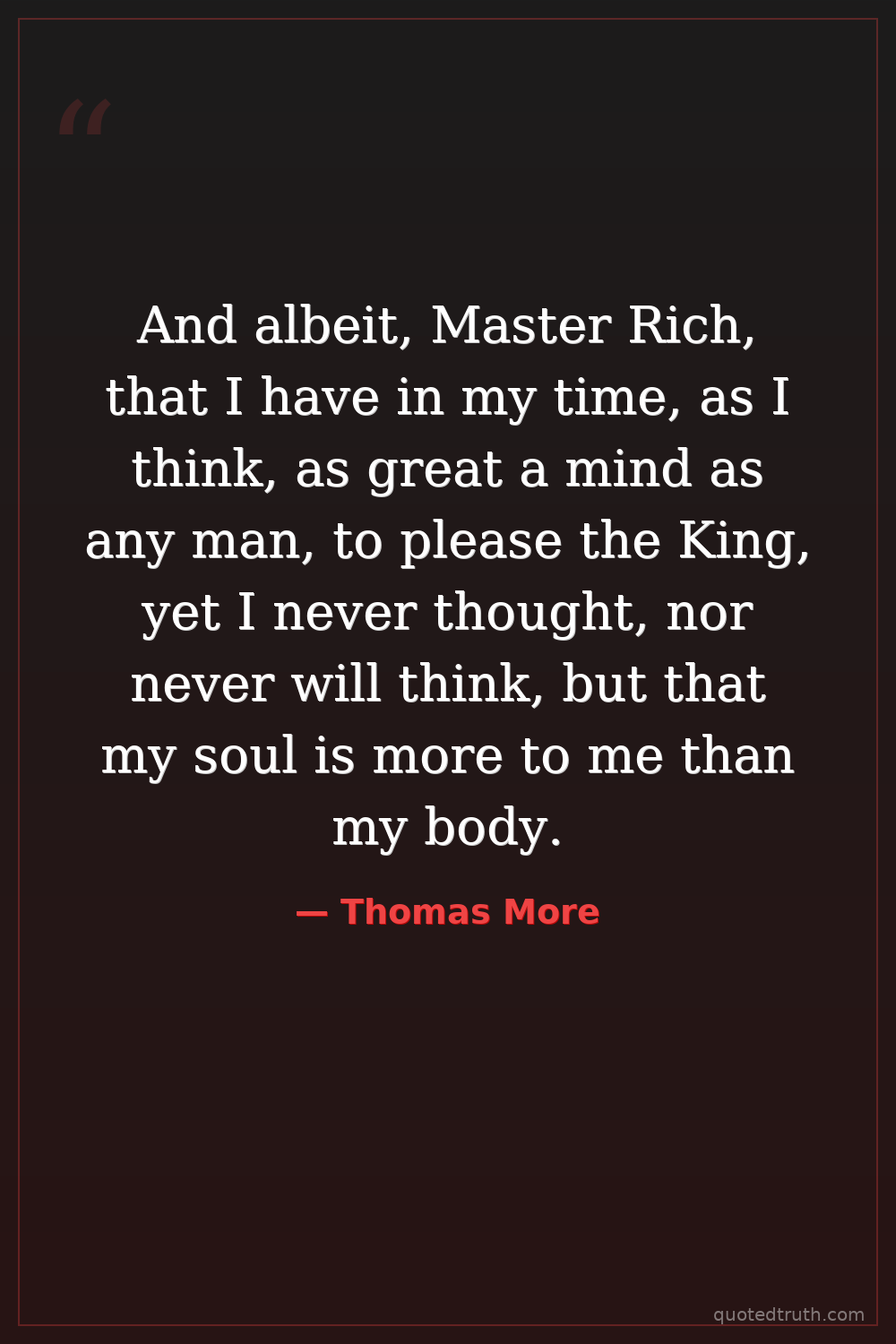 And albeit, Master Rich, that I have in my time, as I think, as great a mind as any man, to please the King, yet I never thought, nor never will think, but that my soul is more to me than my body.