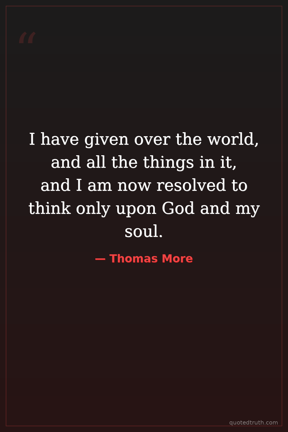 I have given over the world, and all the things in it, and I am now resolved to think only upon God and my soul.