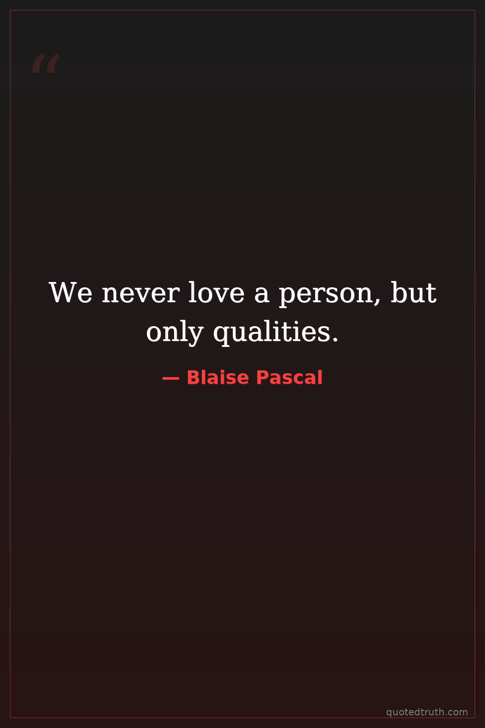 We never love a person, but only qualities.