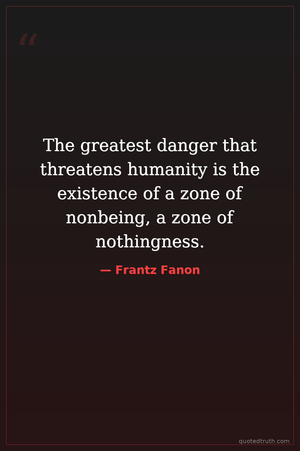 The greatest danger that threatens humanity is the existence of a zone of nonbeing, a zone of nothingness.