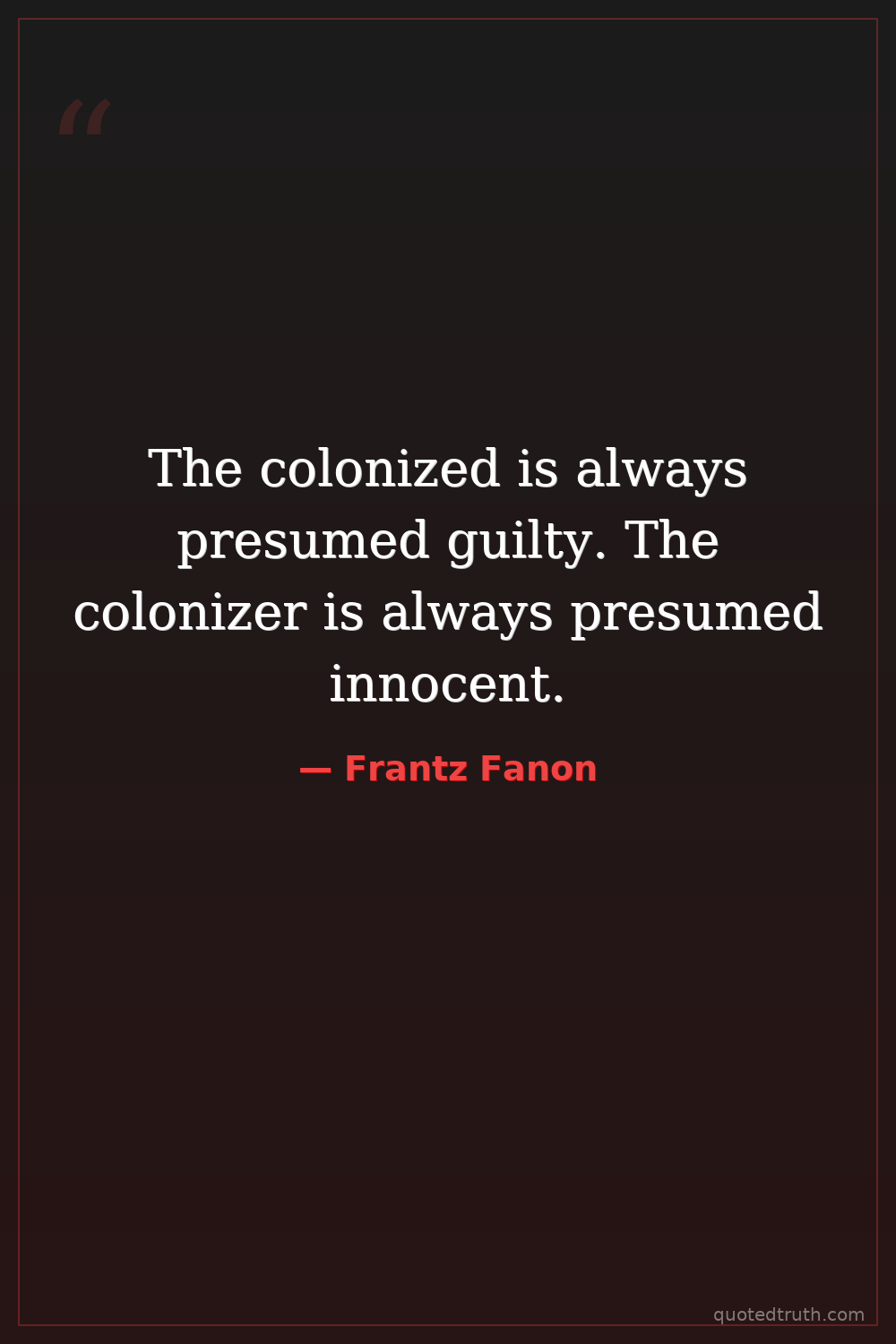 The colonized is always presumed guilty. The colonizer is always presumed innocent.