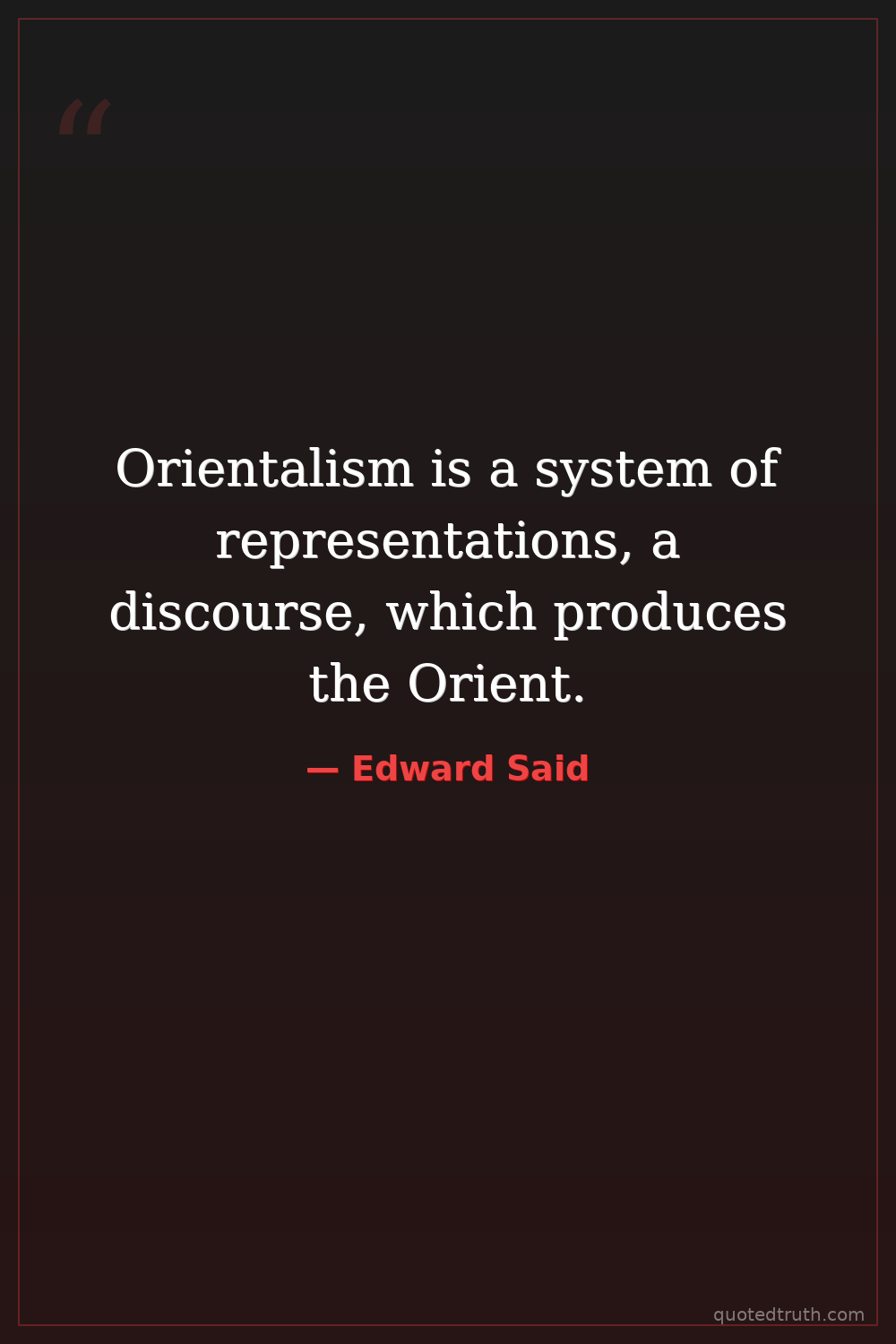 Orientalism is a system of representations, a discourse, which produces the Orient.