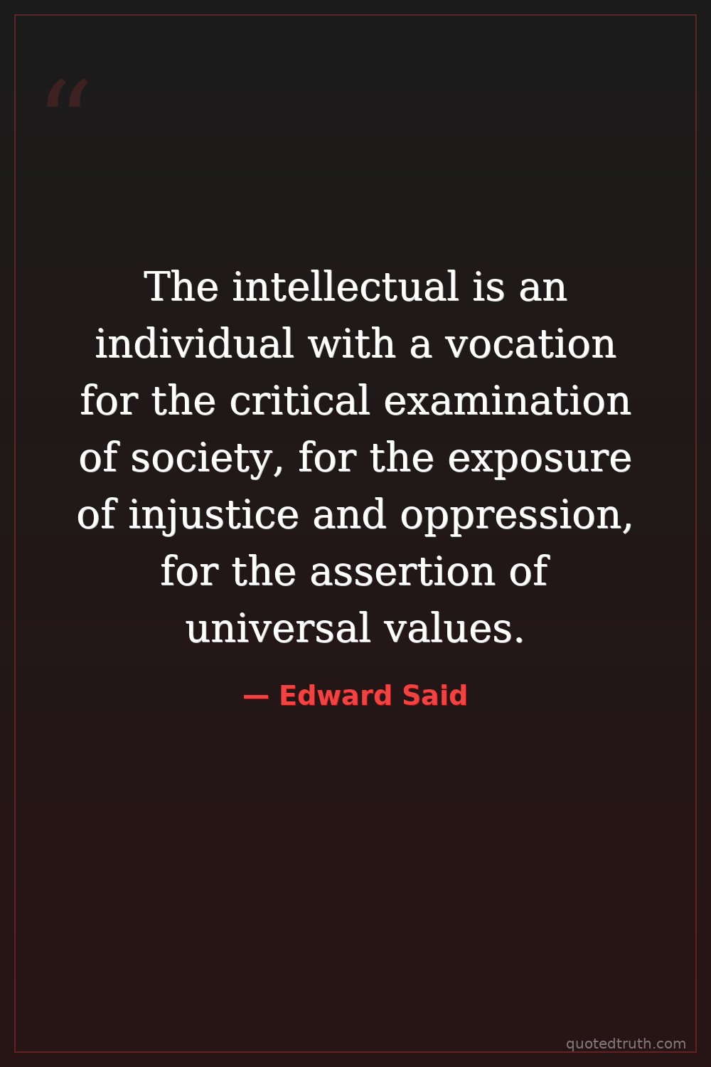 The intellectual is an individual with a vocation for the critical examination of society, for the exposure of injustice and oppression, for the assertion of universal values.