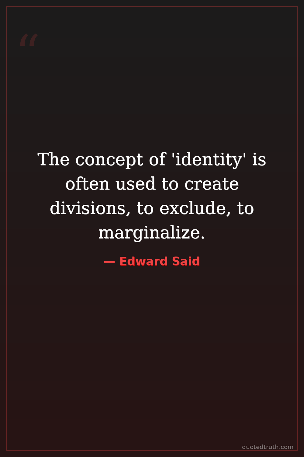 The concept of 'identity' is often used to create divisions, to exclude, to marginalize.