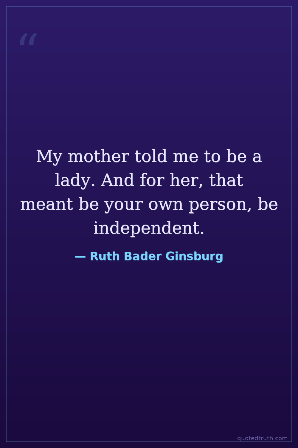 My mother told me to be a lady. And for her, that meant be your own person, be independent.