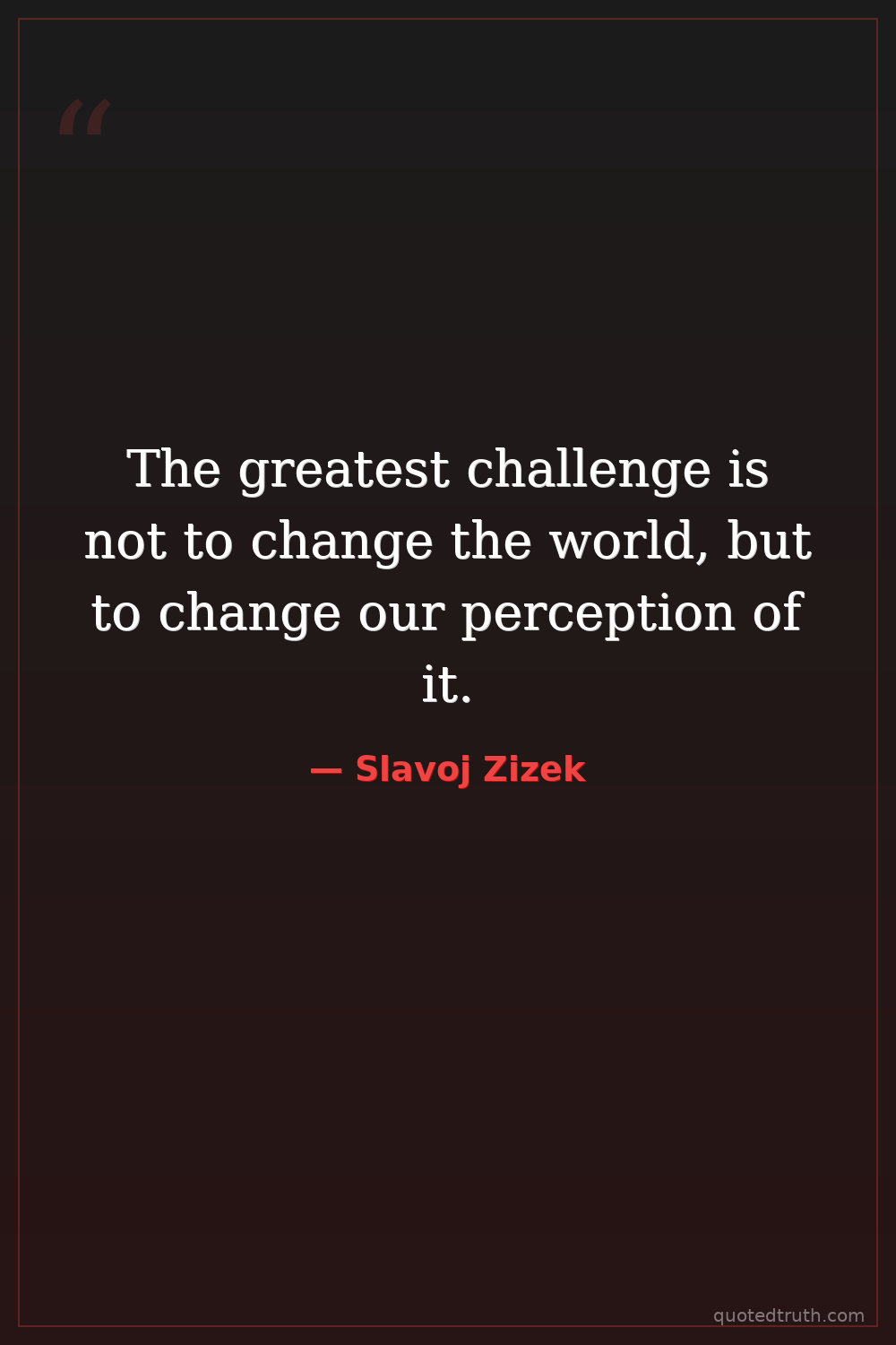 The greatest challenge is not to change the world, but to change our perception of it.
