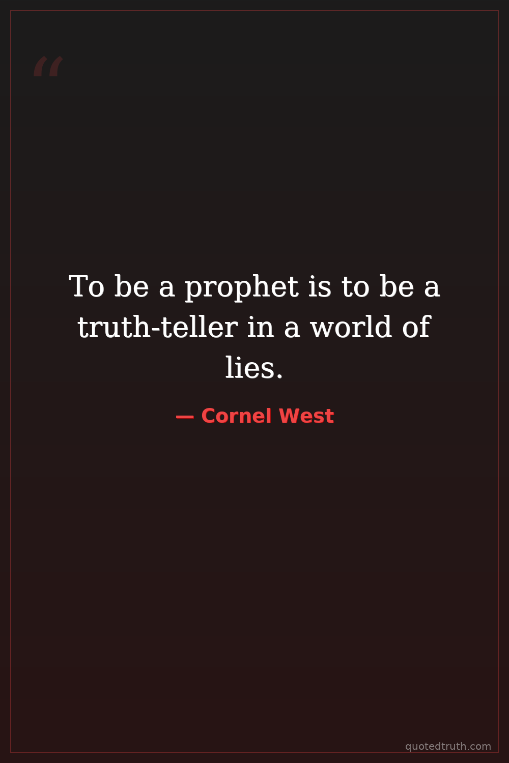 To be a prophet is to be a truth-teller in a world of lies.
