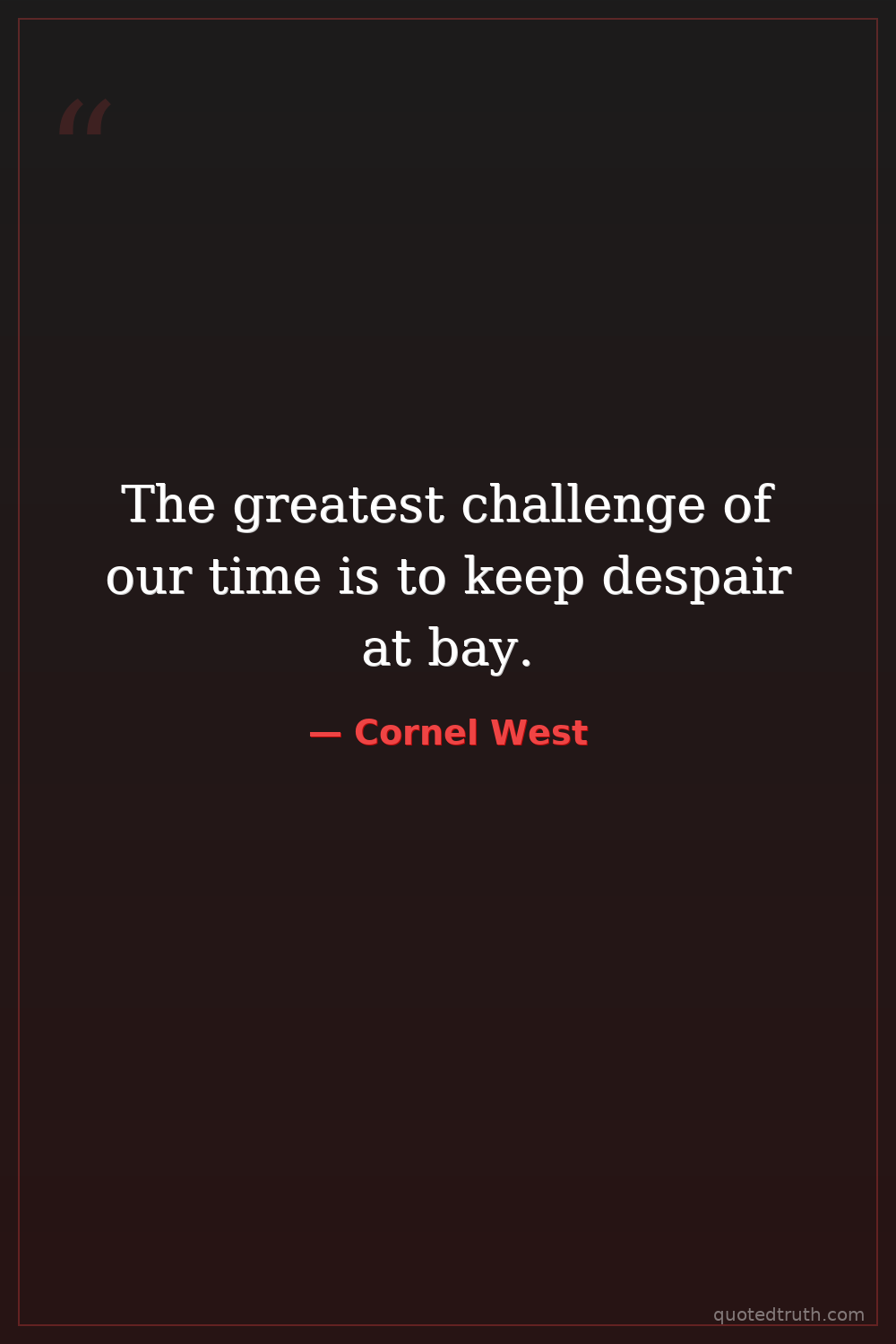 The greatest challenge of our time is to keep despair at bay.
