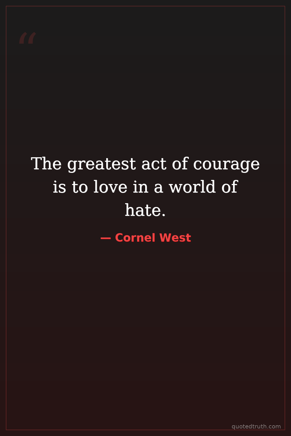 The greatest act of courage is to love in a world of hate.