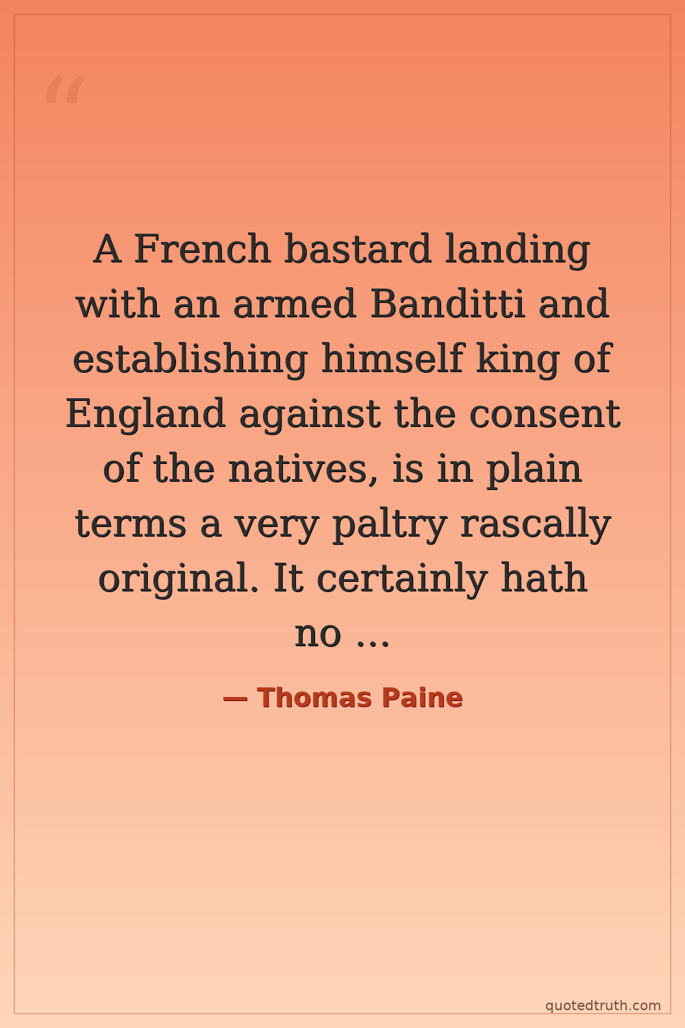 A French bastard landing with an armed Banditti and establishing himself king of England against the consent of the natives, is in plain terms a very paltry rascally original. It certainly hath no divinity in it.