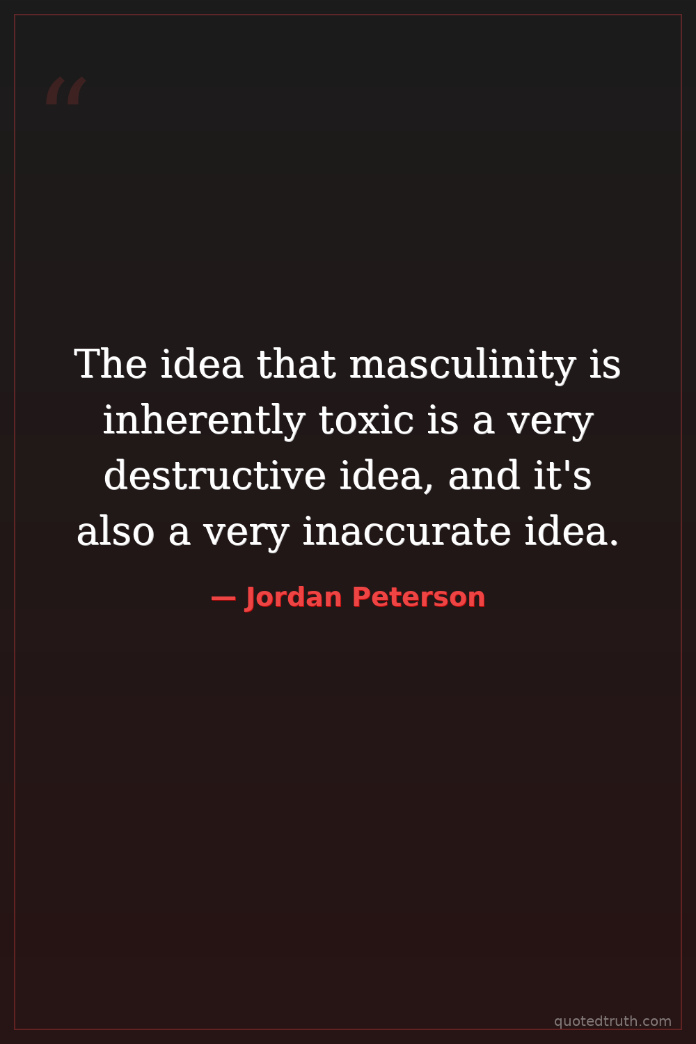 The idea that masculinity is inherently toxic is a very destructive idea, and it's also a very inaccurate idea.