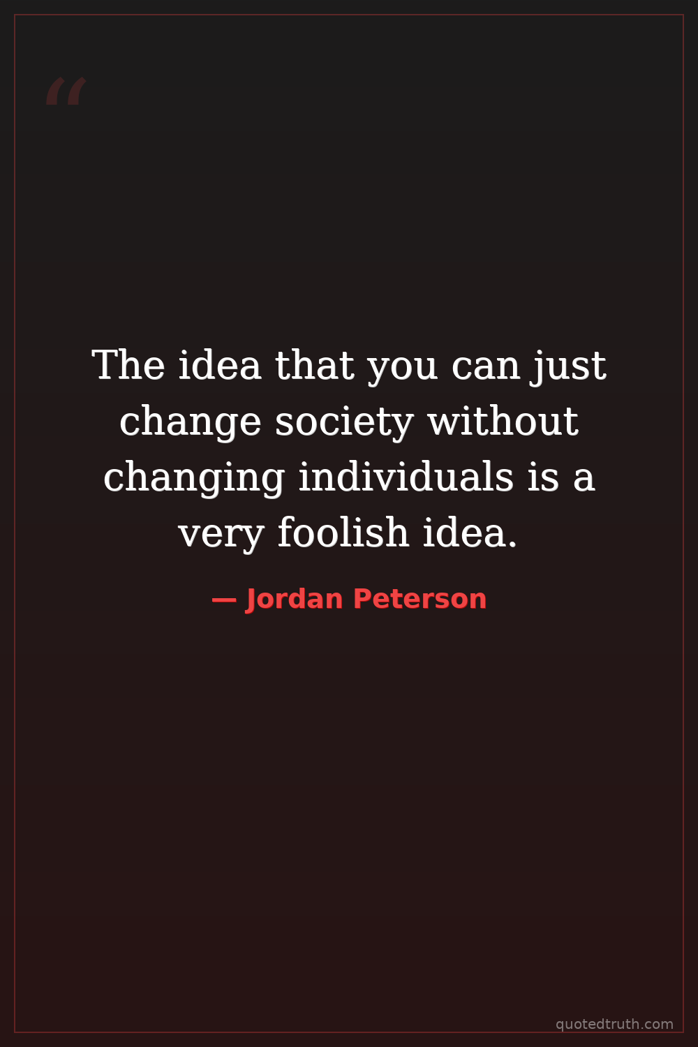 The idea that you can just change society without changing individuals is a very foolish idea.