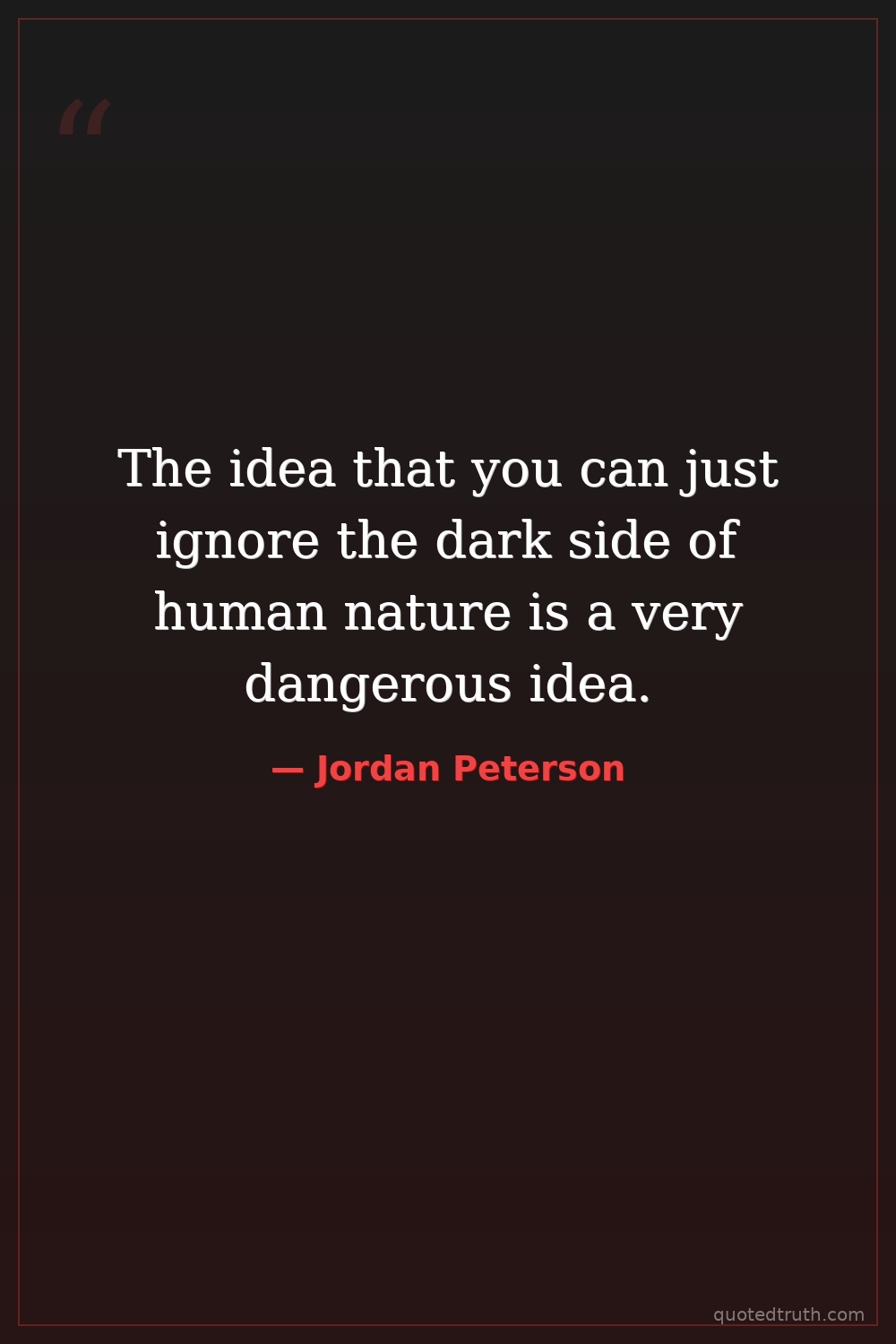 The idea that you can just ignore the dark side of human nature is a very dangerous idea.