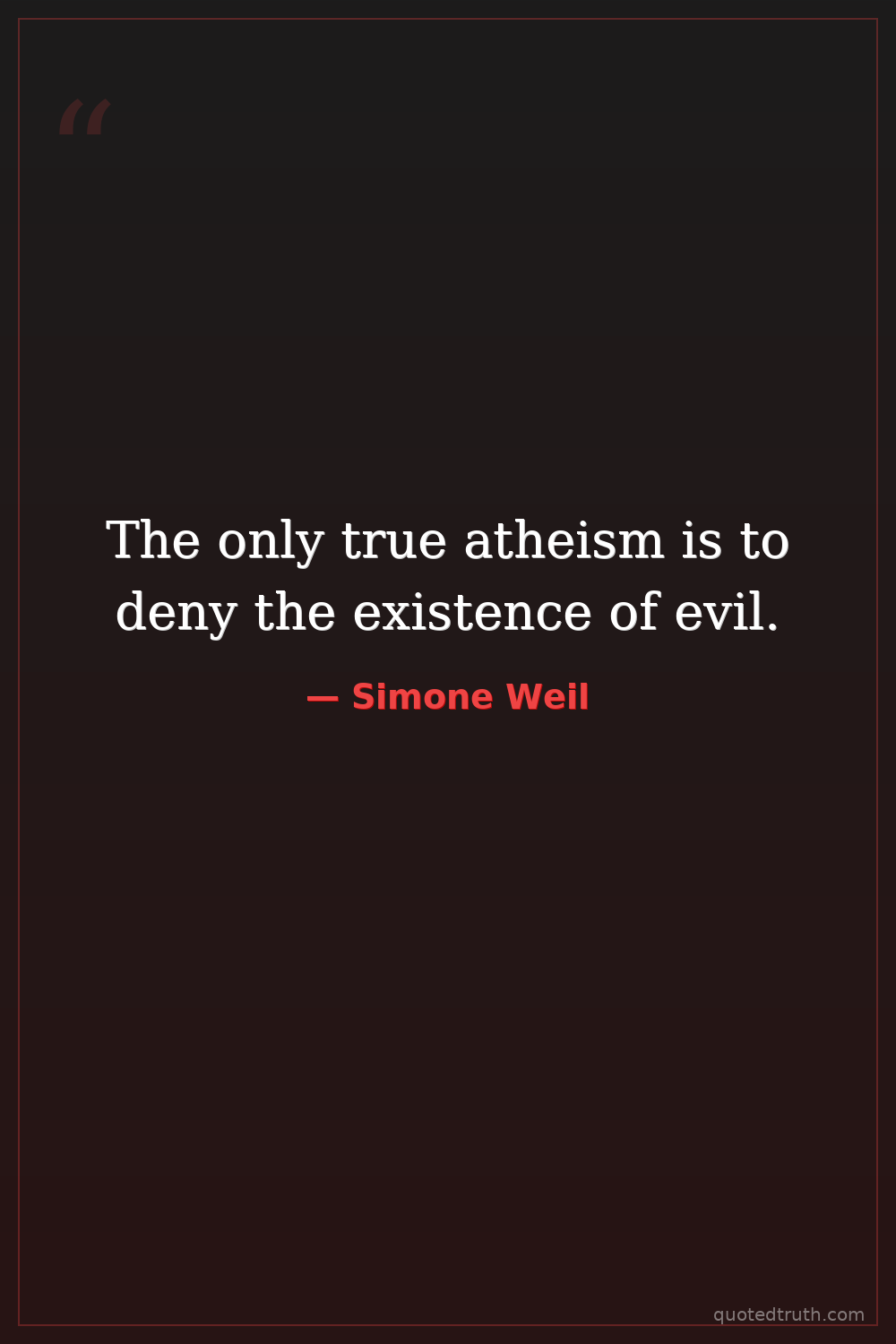 The only true atheism is to deny the existence of evil.