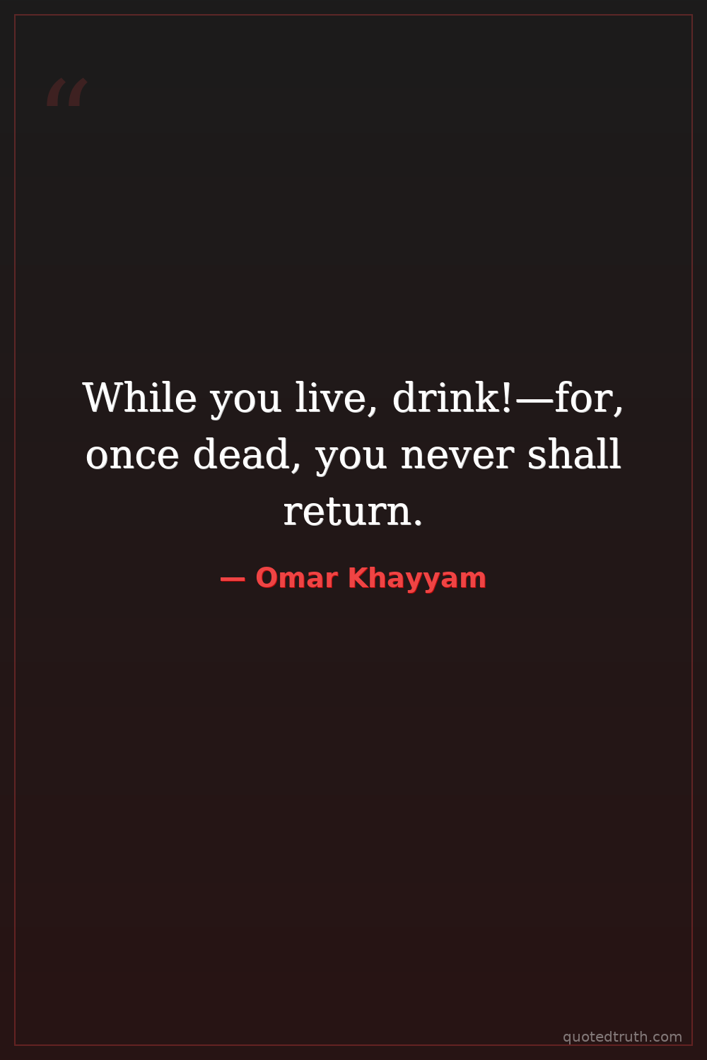 While you live, drink!—for, once dead, you never shall return.