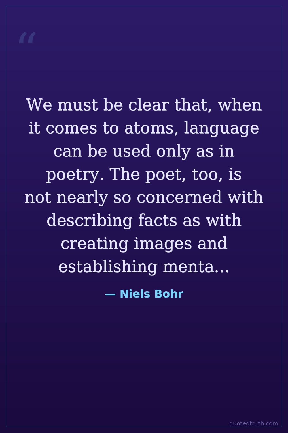 We must be clear that, when it comes to atoms, language can be used only as in poetry. The poet, too, is not nearly so concerned with describing facts as with creating images and establishing mental connections.
