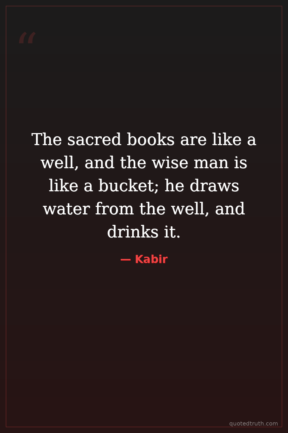 The sacred books are like a well, and the wise man is like a bucket; he draws water from the well, and drinks it.