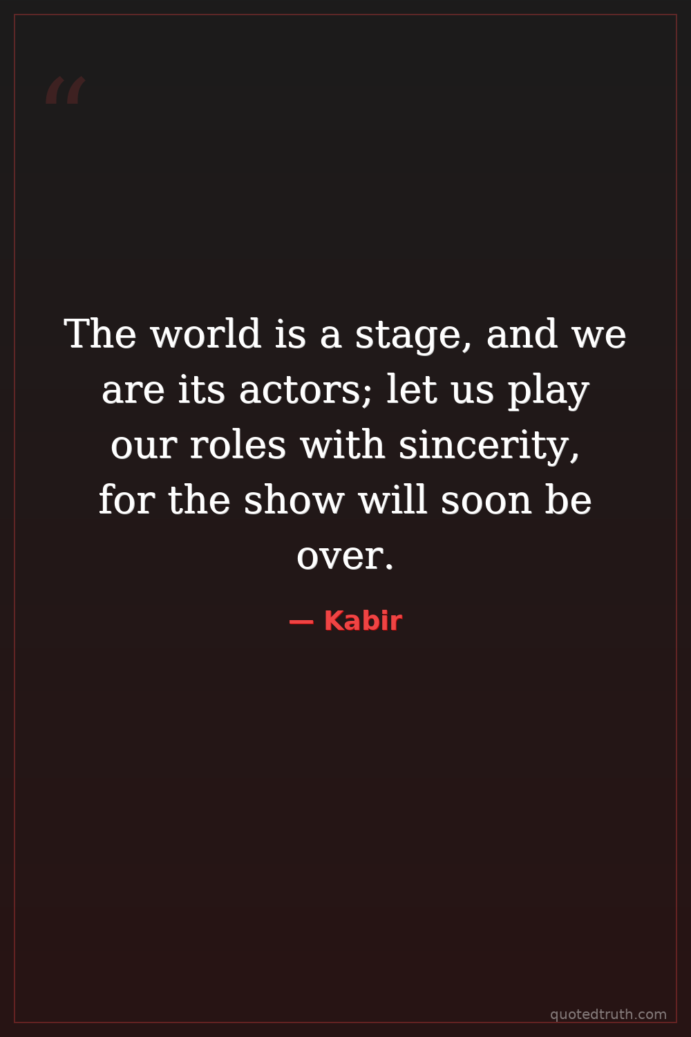 The world is a stage, and we are its actors; let us play our roles with sincerity, for the show will soon be over.