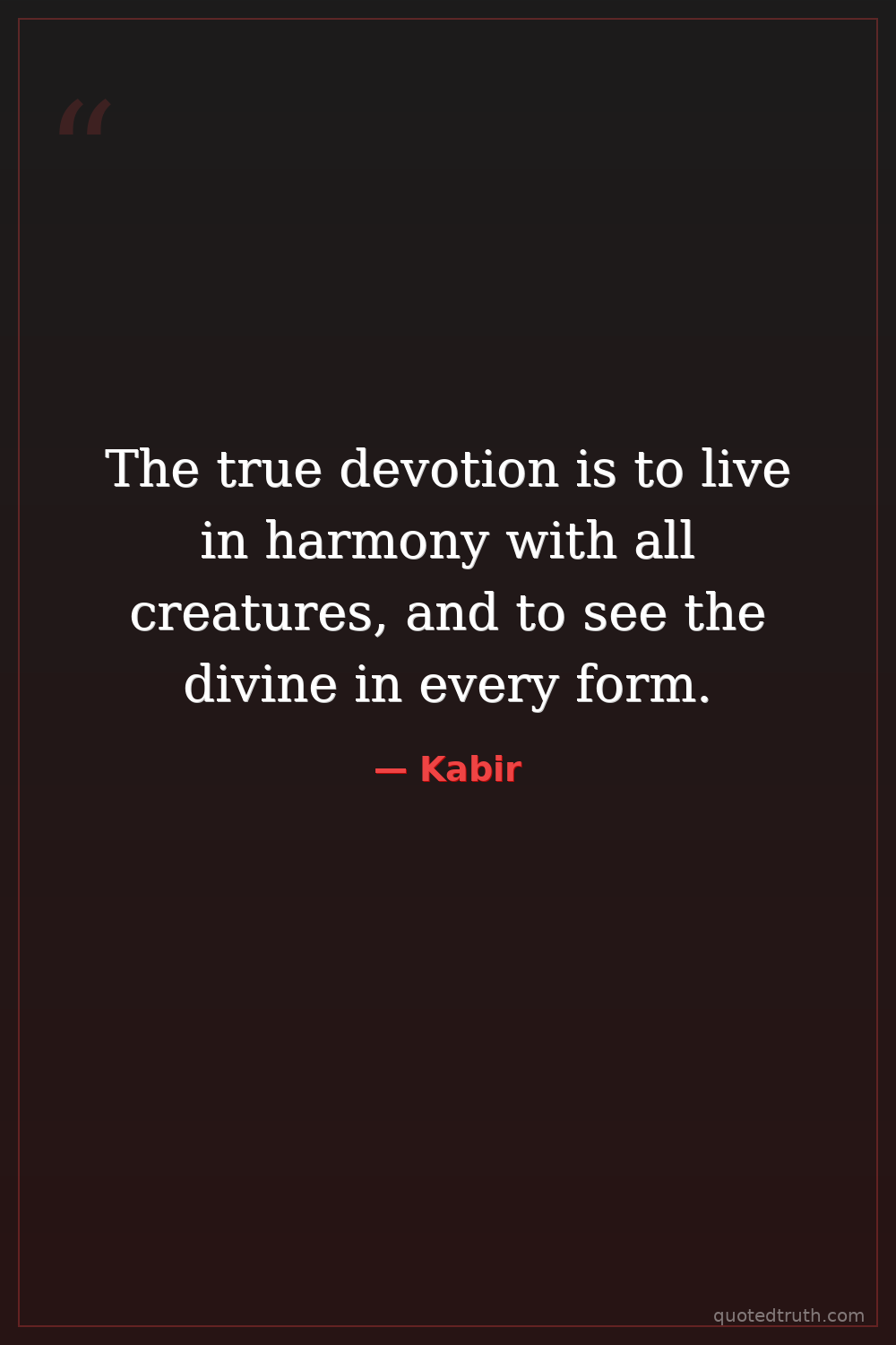 The true devotion is to live in harmony with all creatures, and to see the divine in every form.
