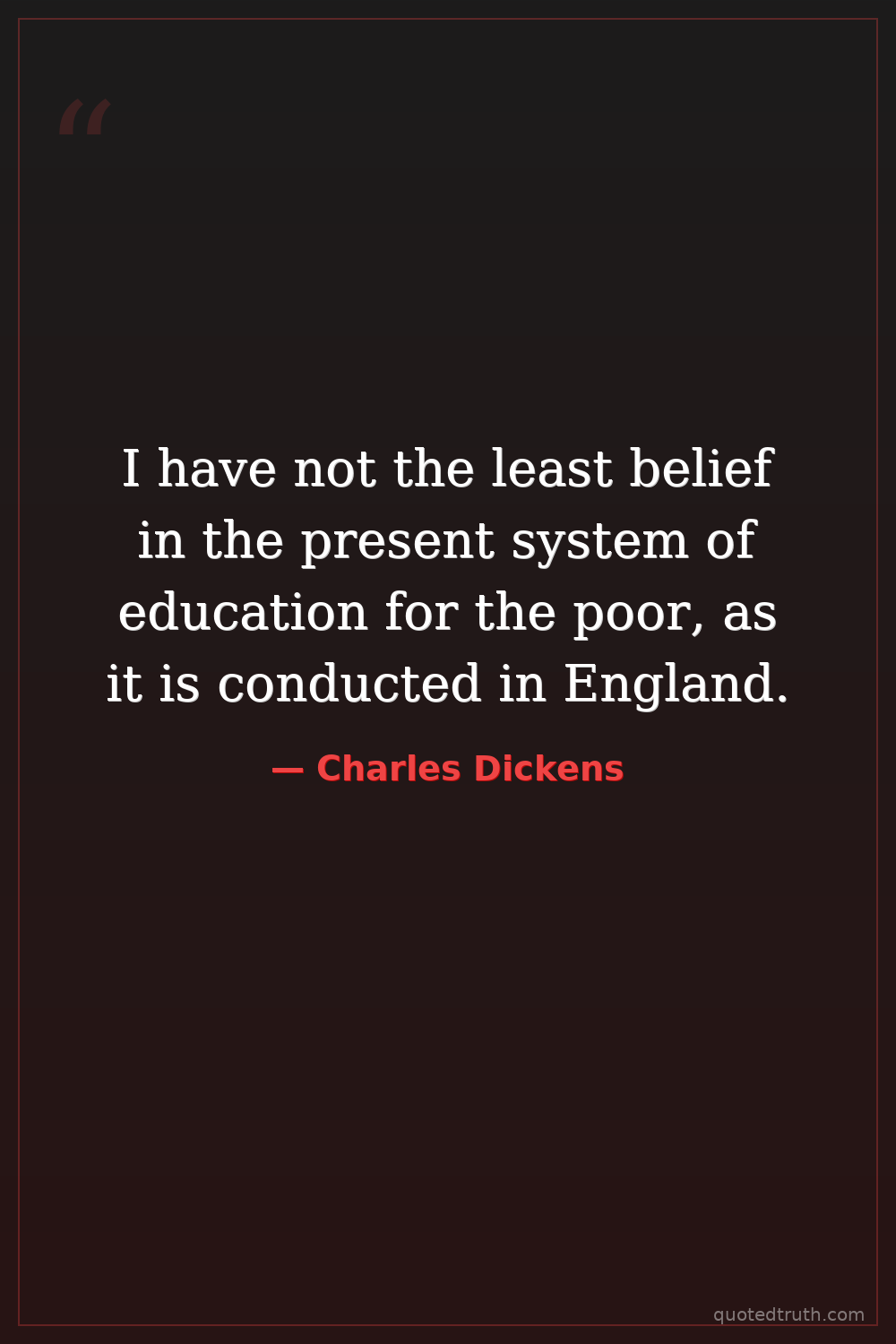I have not the least belief in the present system of education for the poor, as it is conducted in England.