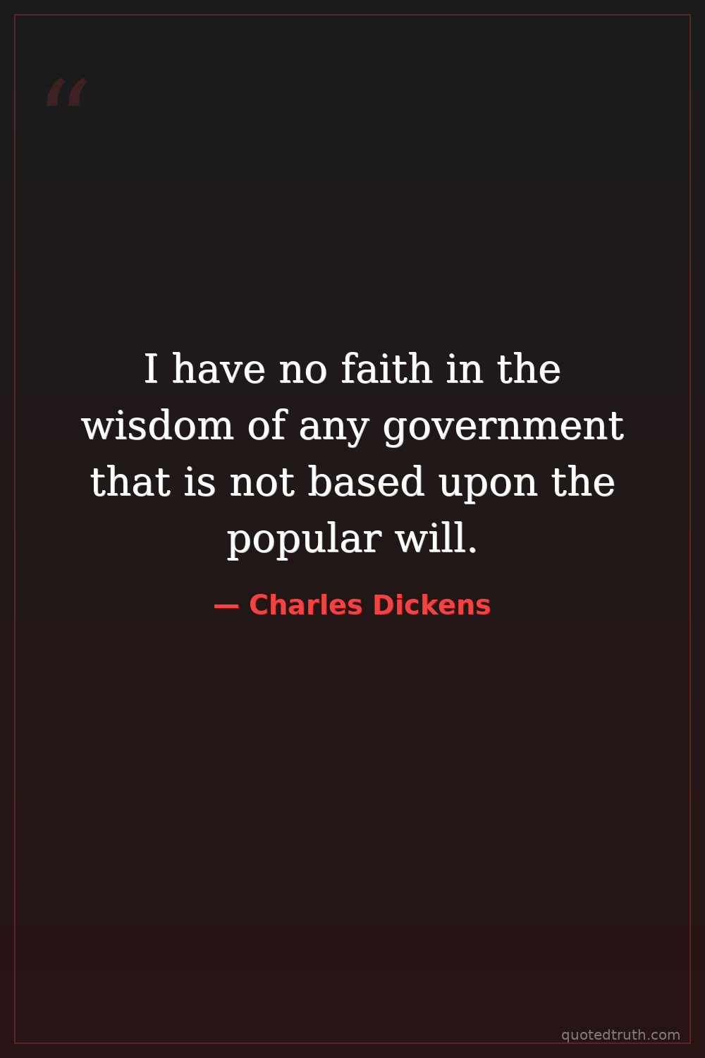 I have no faith in the wisdom of any government that is not based upon the popular will.