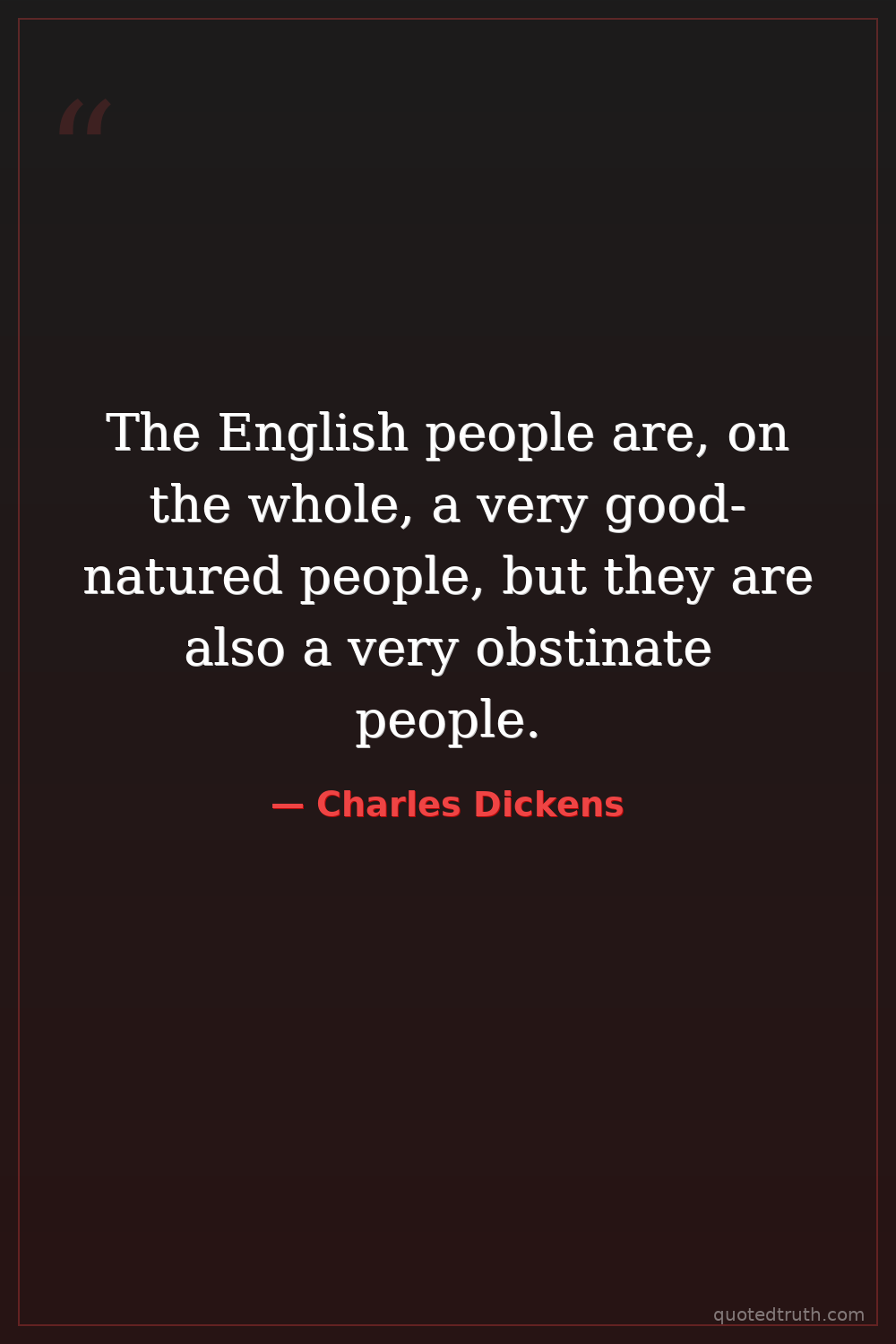 The English people are, on the whole, a very good-natured people, but they are also a very obstinate people.