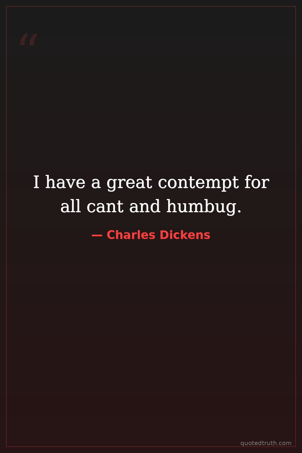 I have a great contempt for all cant and humbug.