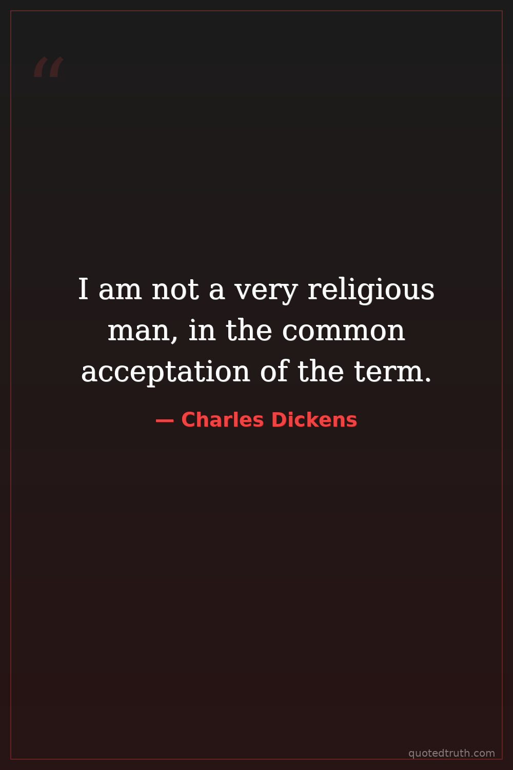 I am not a very religious man, in the common acceptation of the term.