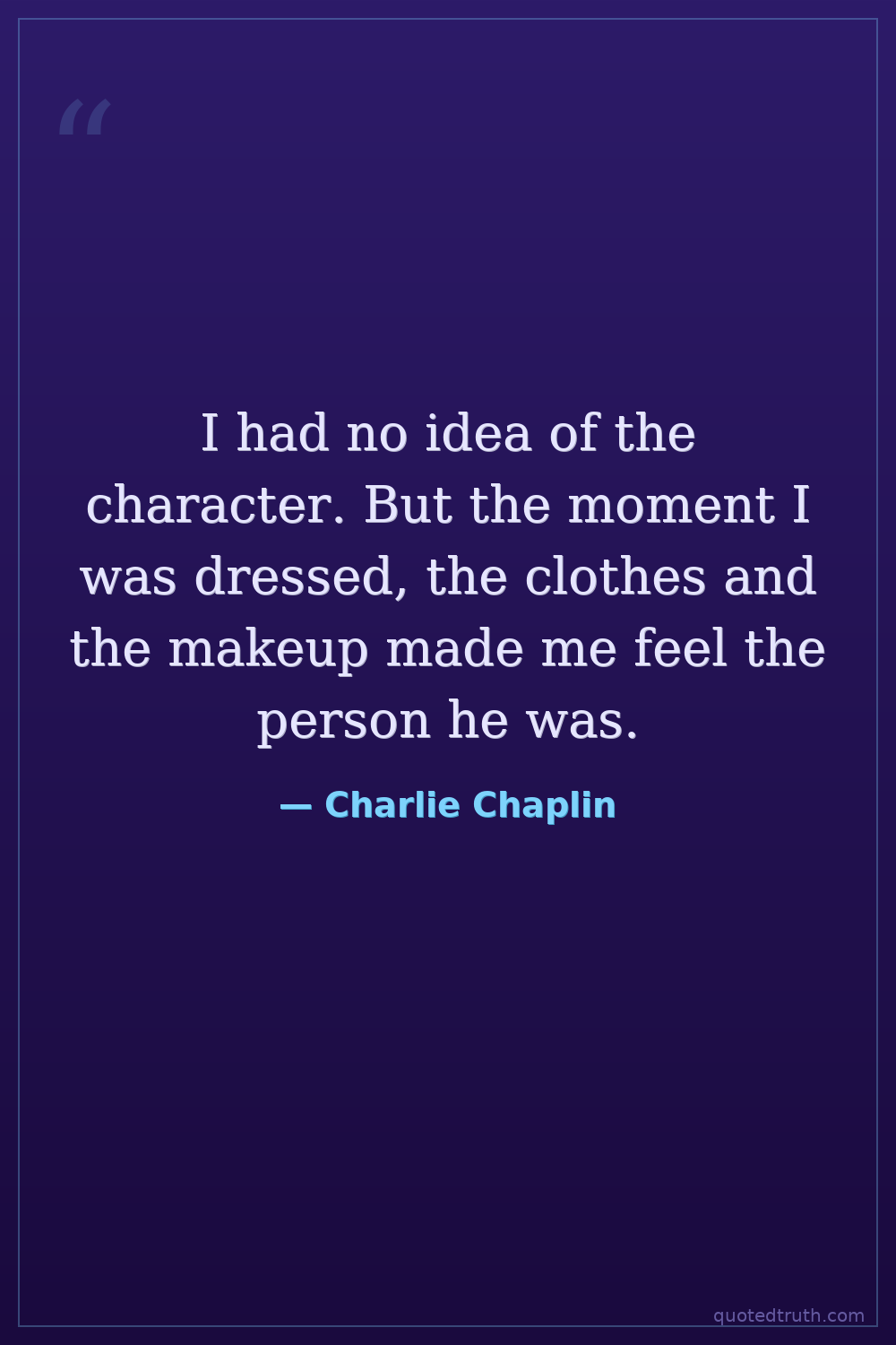 I had no idea of the character. But the moment I was dressed, the clothes and the makeup made me feel the person he was.