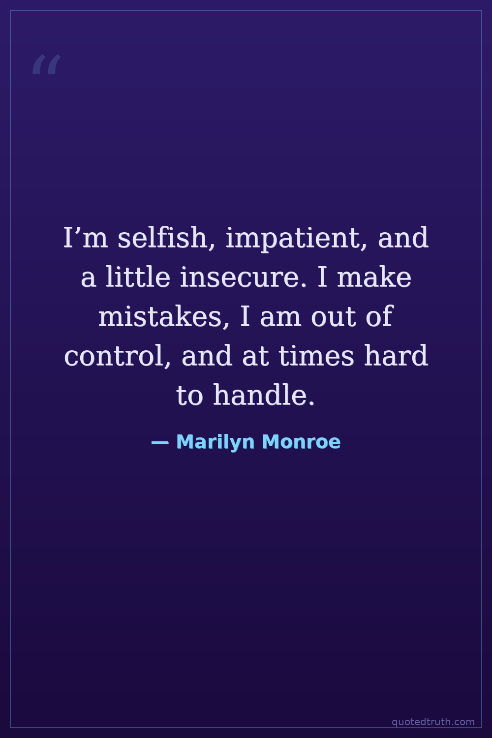I’m selfish, impatient, and a little insecure. I make mistakes, I am out of control, and at times hard to handle.
