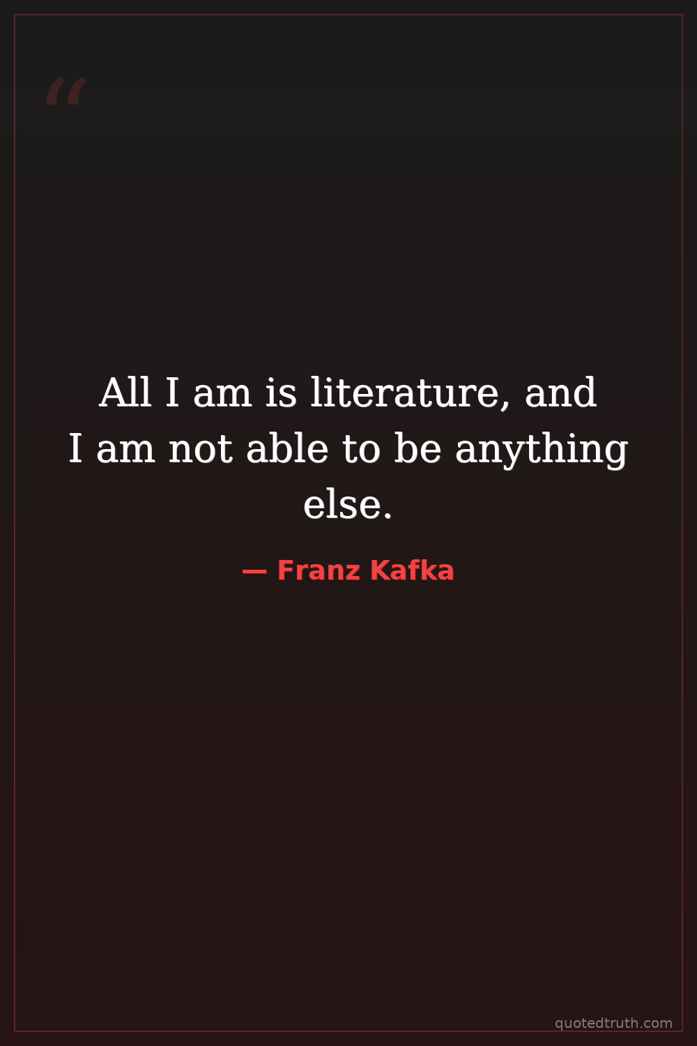 All I am is literature, and I am not able to be anything else.