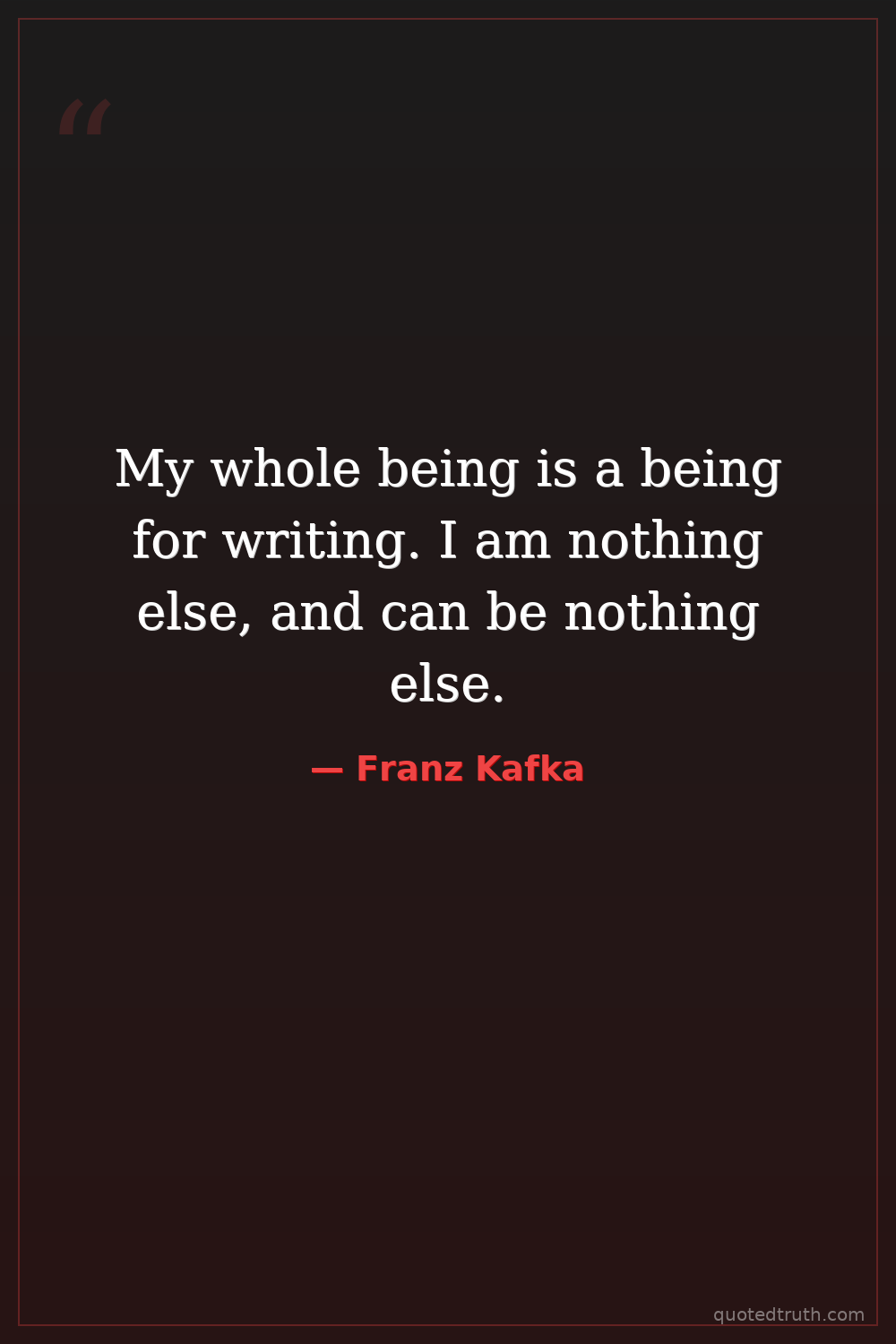 My whole being is a being for writing. I am nothing else, and can be nothing else.