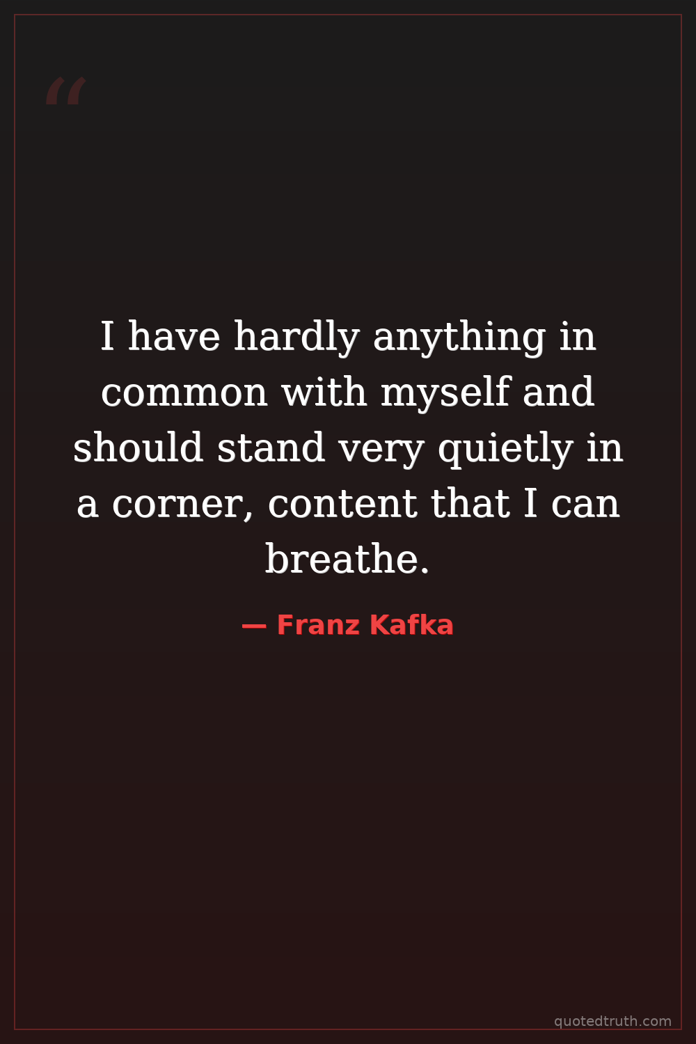 I have hardly anything in common with myself and should stand very quietly in a corner, content that I can breathe.