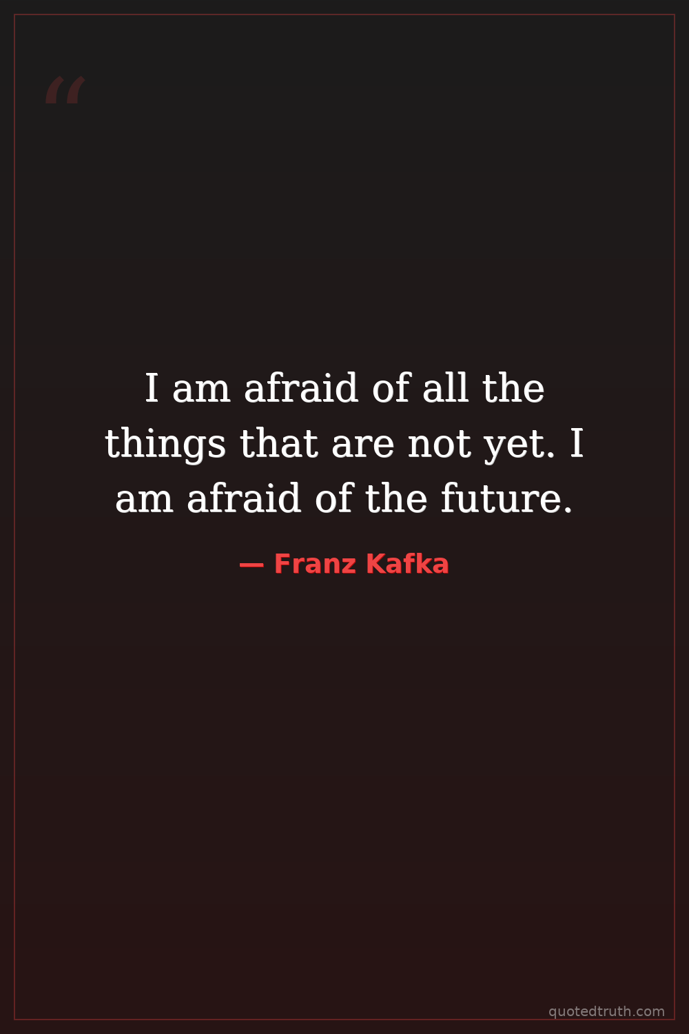 I am afraid of all the things that are not yet. I am afraid of the future.