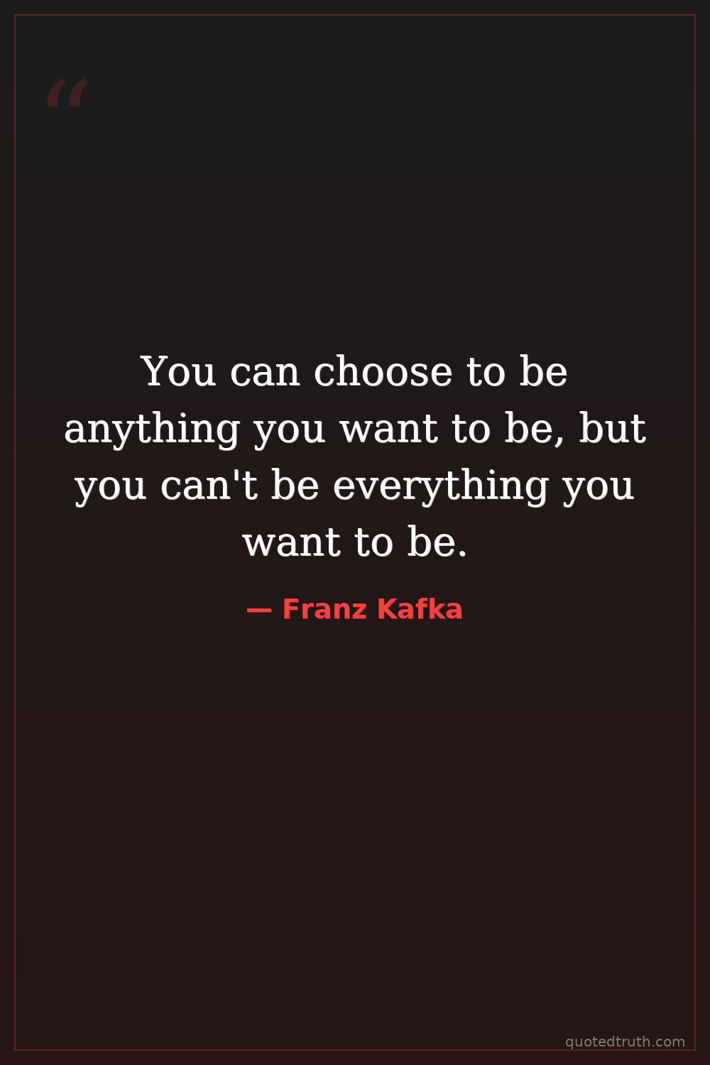 You can choose to be anything you want to be, but you can't be everything you want to be.
