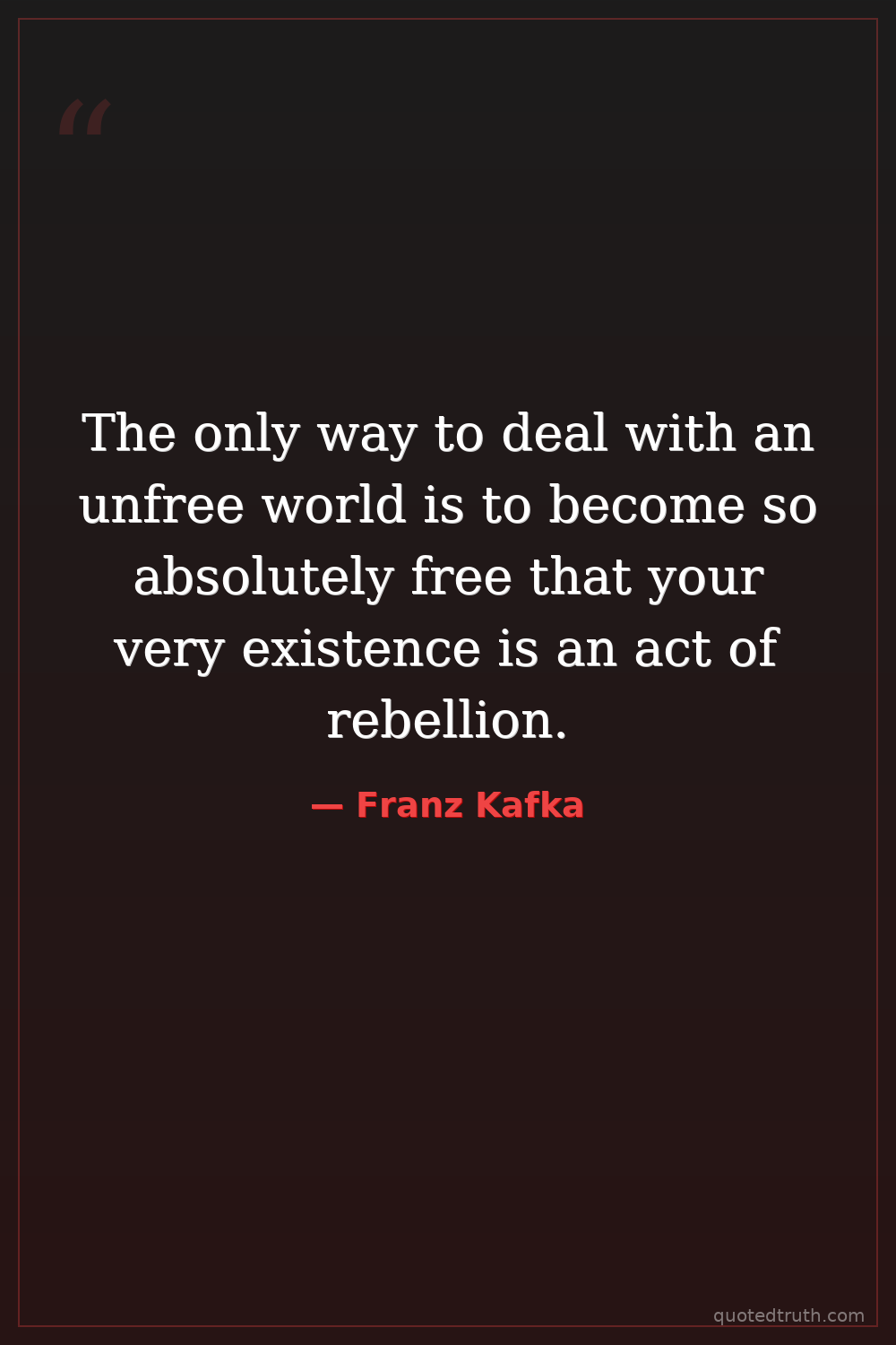 The only way to deal with an unfree world is to become so absolutely free that your very existence is an act of rebellion.