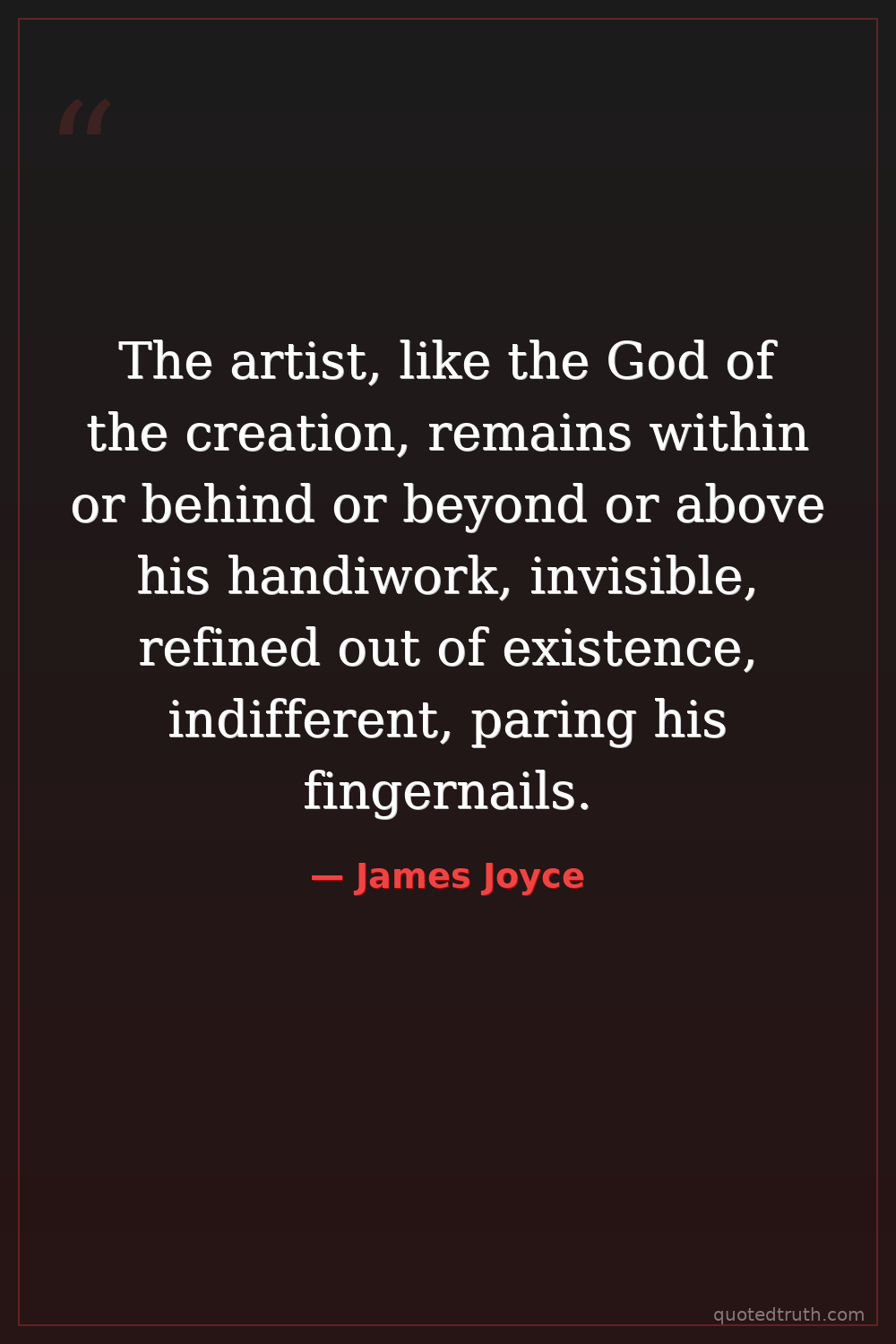 The artist, like the God of the creation, remains within or behind or beyond or above his handiwork, invisible, refined out of existence, indifferent, paring his fingernails.