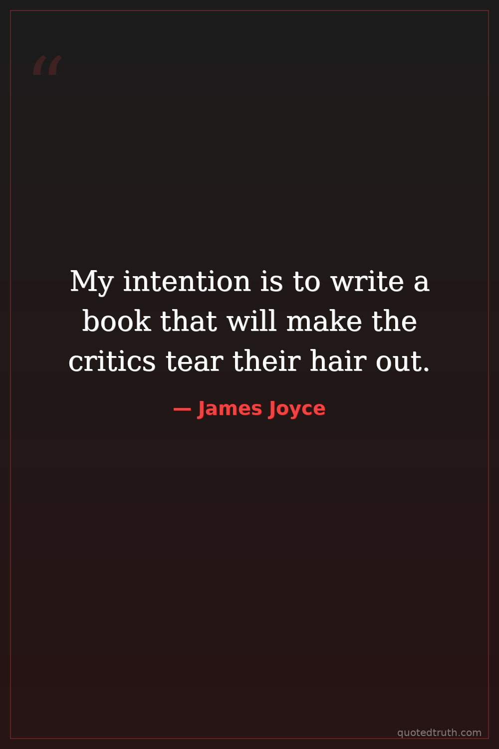 My intention is to write a book that will make the critics tear their hair out.