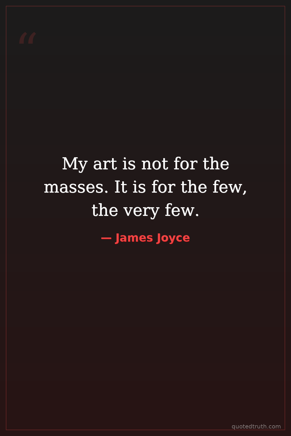 My art is not for the masses. It is for the few, the very few.