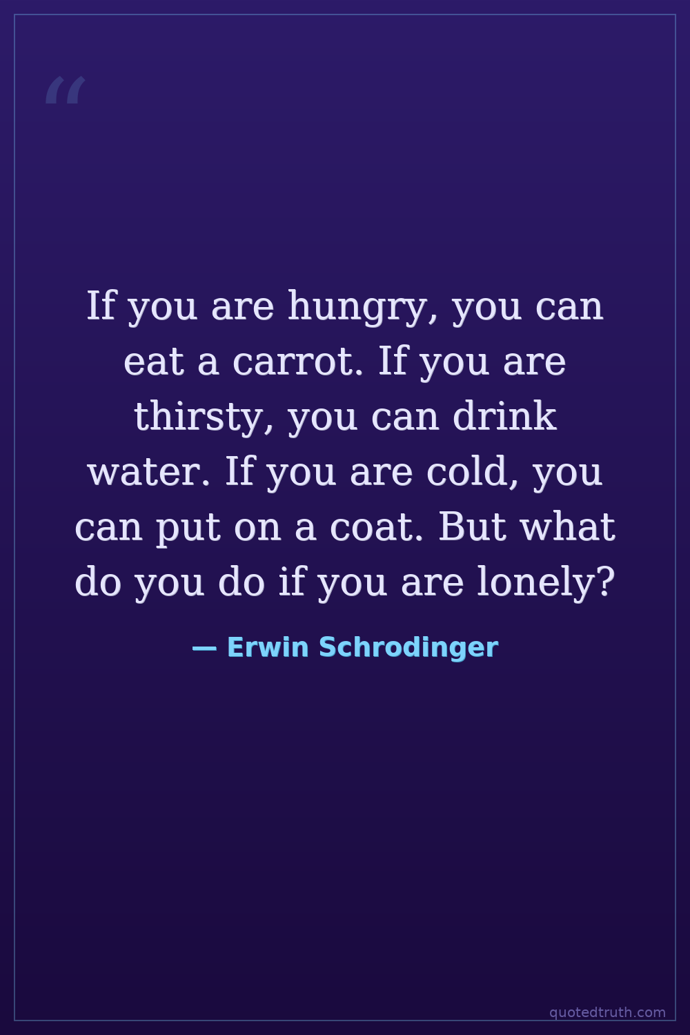 If you are hungry, you can eat a carrot. If you are thirsty, you can drink water. If you are cold, you can put on a coat. But what do you do if you are lonely?