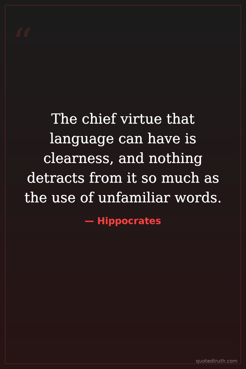 The chief virtue that language can have is clearness, and nothing detracts from it so much as the use of unfamiliar words.