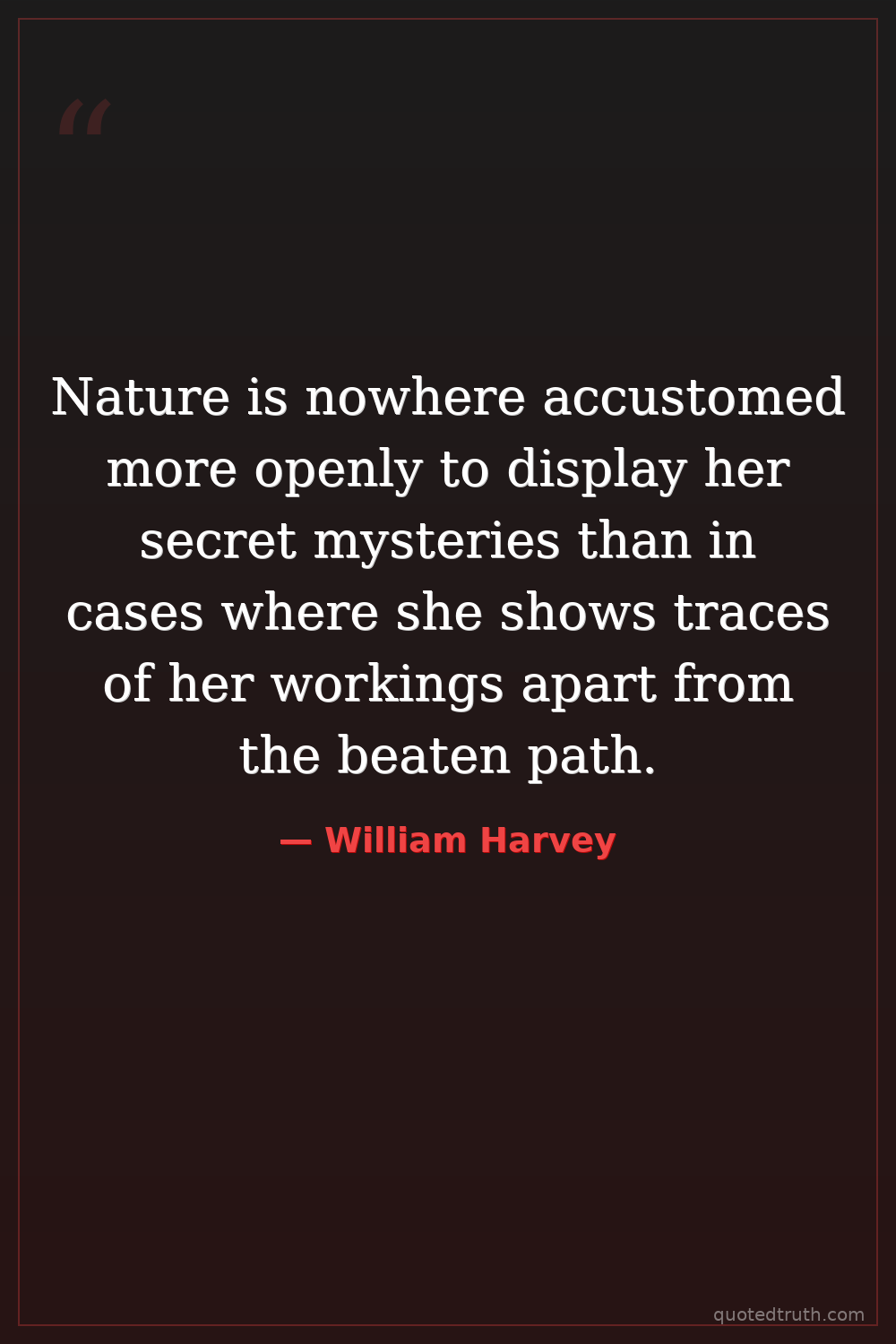 Nature is nowhere accustomed more openly to display her secret mysteries than in cases where she shows traces of her workings apart from the beaten path.