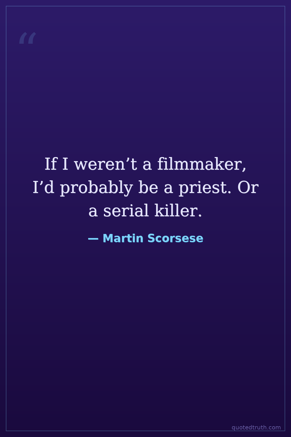 If I weren’t a filmmaker, I’d probably be a priest. Or a serial killer.