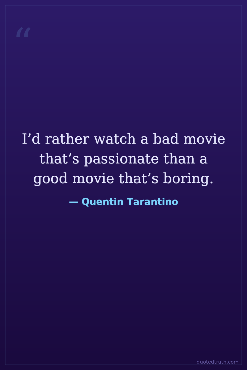I’d rather watch a bad movie that’s passionate than a good movie that’s boring.