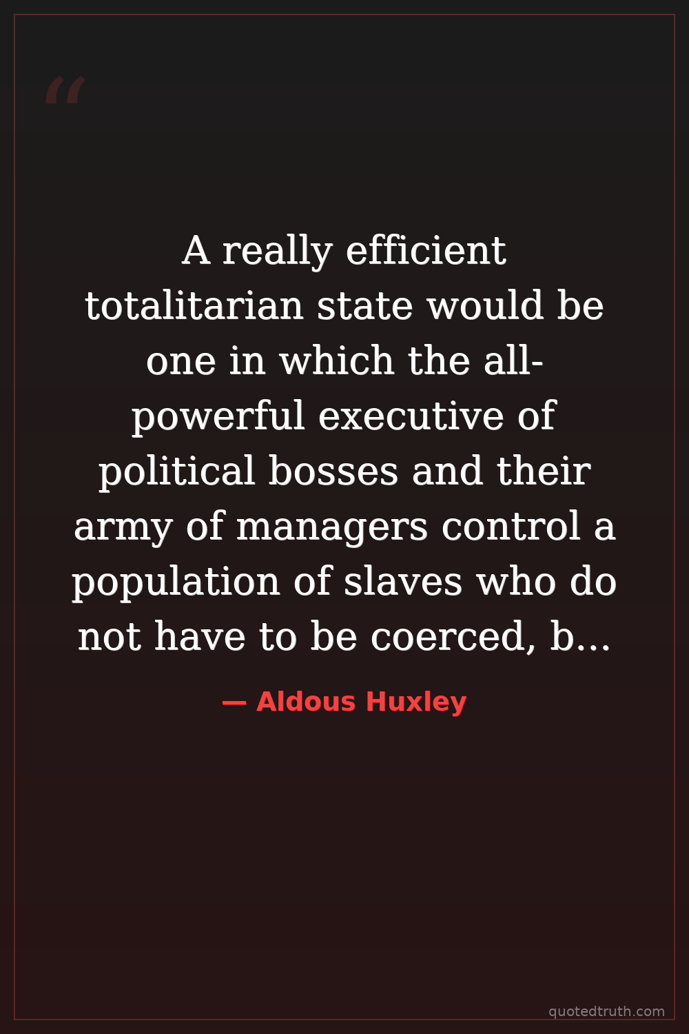 A really efficient totalitarian state would be one in which the all-powerful executive of political bosses and their army of managers control a population of slaves who do not have to be coerced, because they love their servitude.