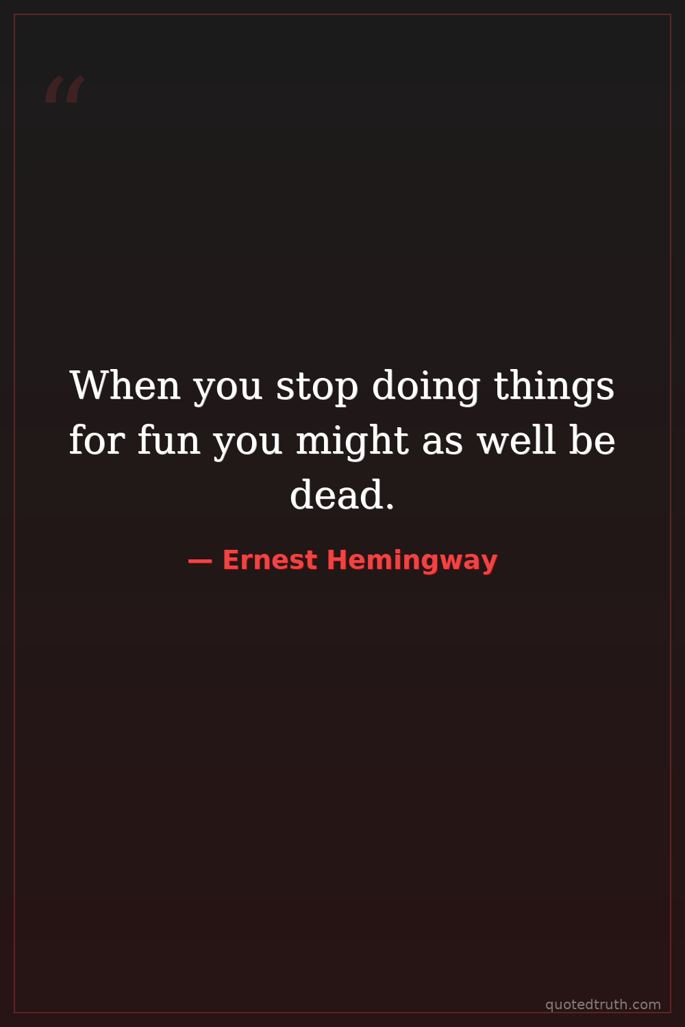 When you stop doing things for fun you might as well be dead.