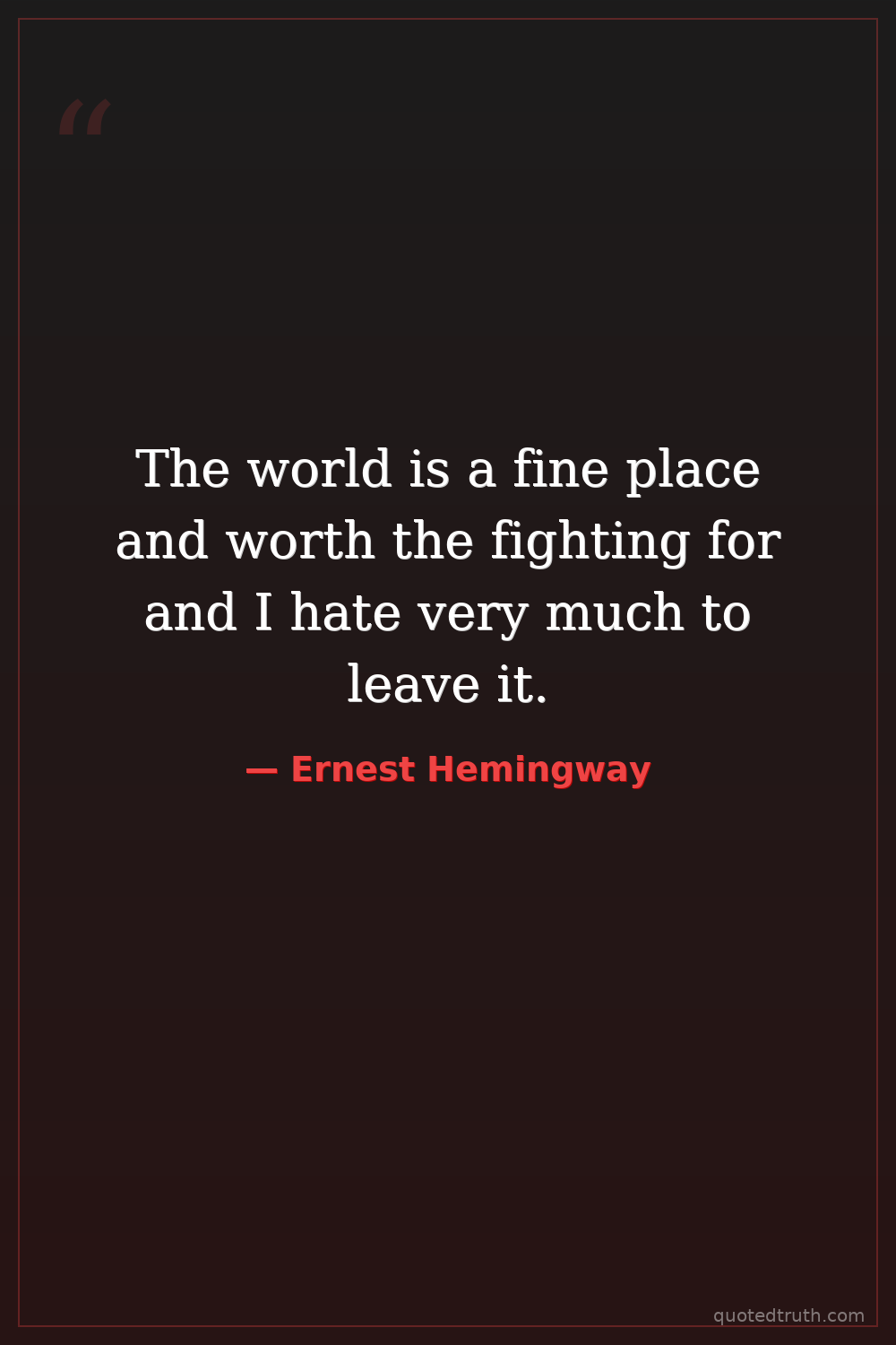 The world is a fine place and worth the fighting for and I hate very much to leave it.