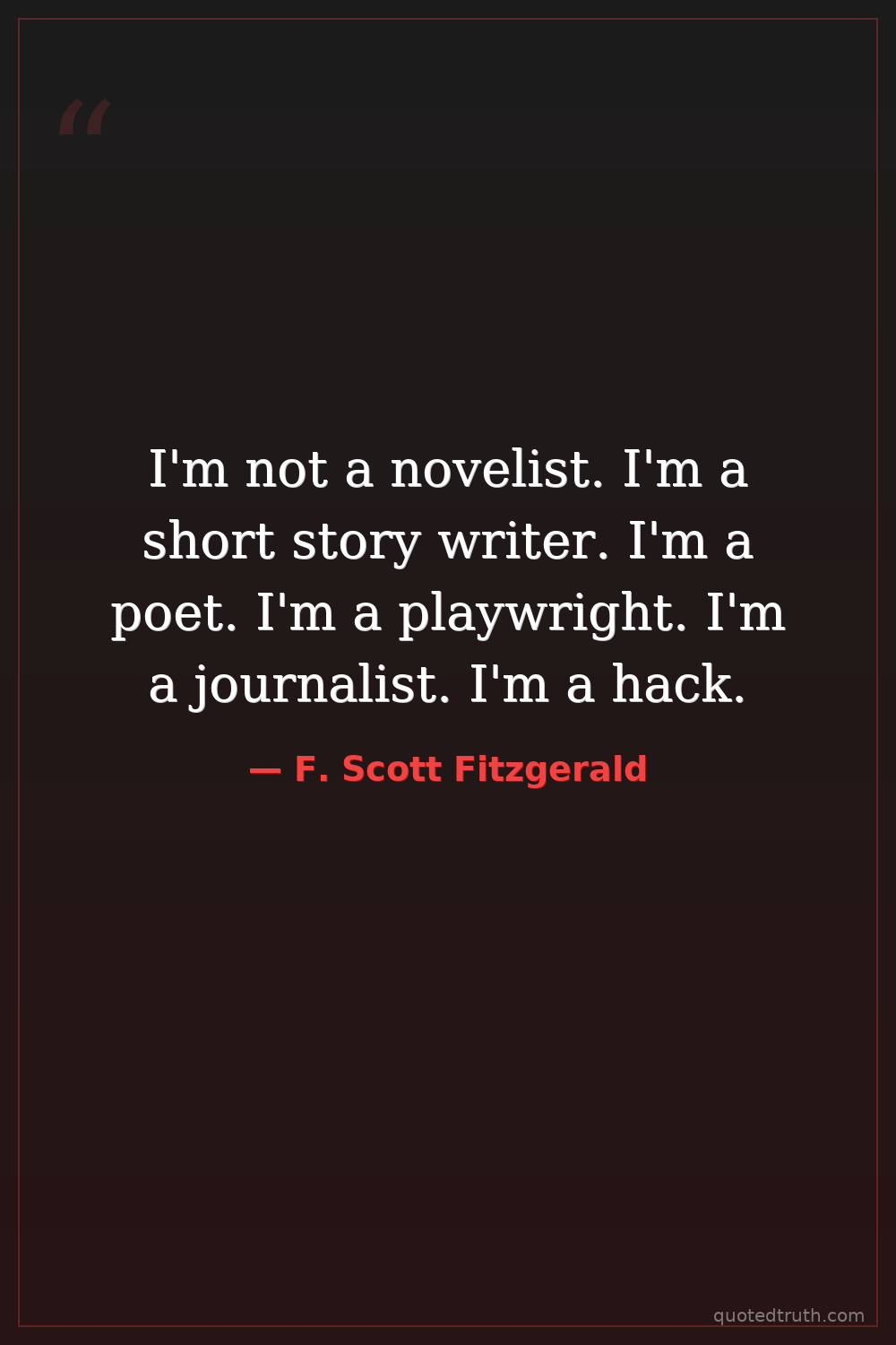 I'm not a novelist. I'm a short story writer. I'm a poet. I'm a playwright. I'm a journalist. I'm a hack.